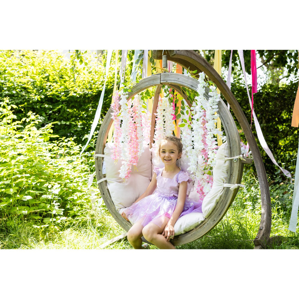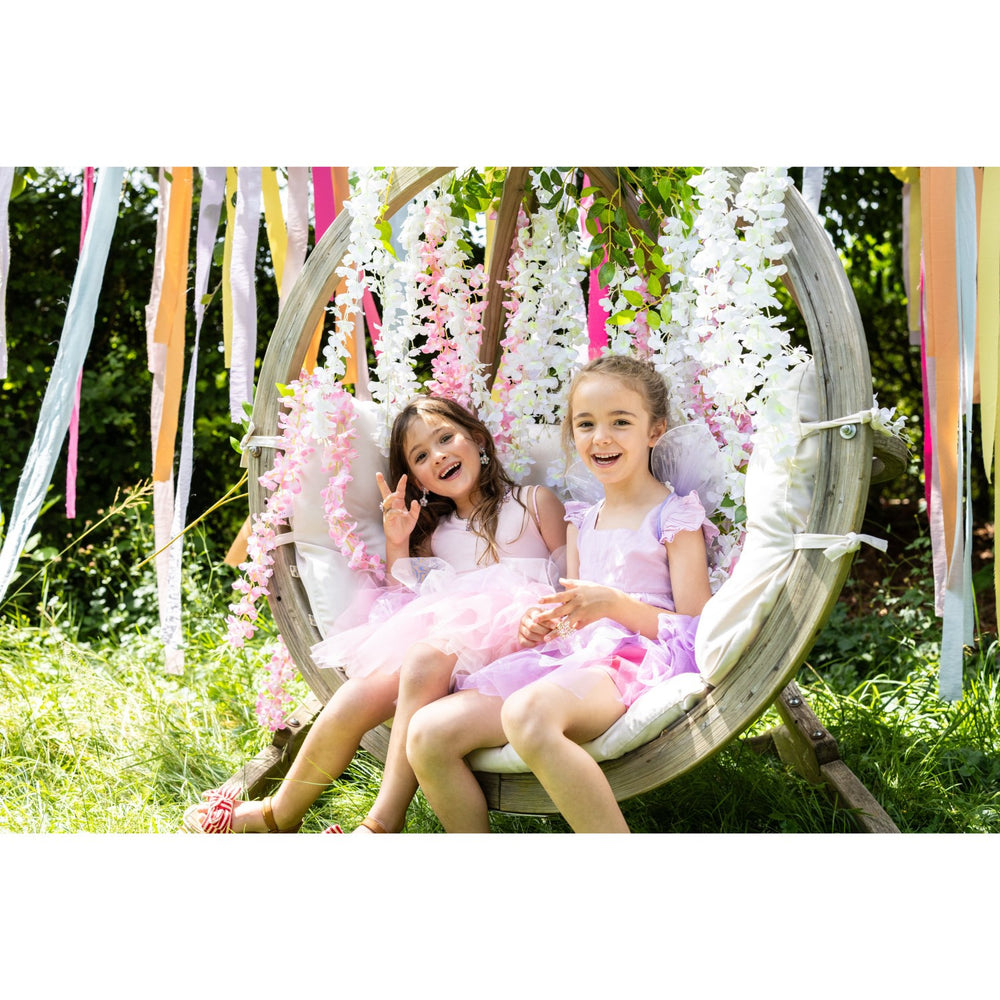 Watch your little one transform into a magical butterfly with the Great Pretenders Flutter Butterfly set! This enchanting ensemble includes a shimmering purple skirt, delicate wings, and a matching wand. Crafted with sparkly tulle and whimsical accents, it's perfect for parties, dress-up, or just a day full of imaginative play. Give your child the wings to soar into a world of fantasy and fun! Suitable for children ages 3 and up. Age: 4-6 years Washing instructions: Remember to follow washing and user instructions