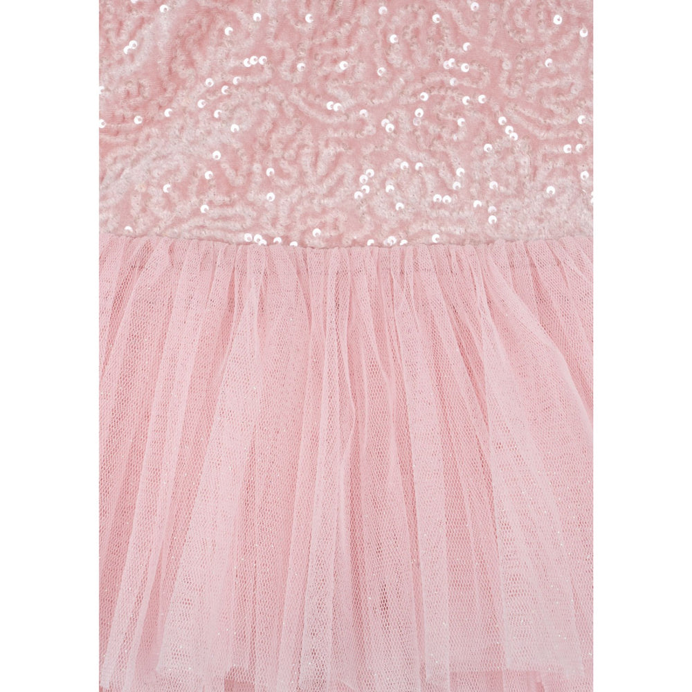 Introducing the Konges Sløjd Ash Rose Ballerina Dress, a dream come true for young dance enthusiasts. This classic tutu-styled dress features a voluminous tulle skirt adorned with decorative sequins, combined with a fitted suit made from stretchy performance fabric for optimal comfort and movement. The soft ash rose color and charming puff sleeves add a touch of elegance, while the low scoop back ensures a snug fit. Perfect for recitals, dress-up days, or any event where a little sparkle is required, this dress is designed to make your little one feel like the star of the show. Easy to care for, it promises to keep its enchanting allure wear after wear.