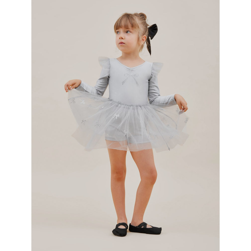 Take your little star's gymnastics to new heights with the Sofie Schnoor X Luxury Baby Silver EstelleSK Gymnastics Suit. This suit is designed to shine in the spotlight with its sparkling silver design and a tulle skirt that dances with every move. Bow detailing adds an adorable touch that turns every exercise into a performance. Perfect for everything from pirouettes to playdates.