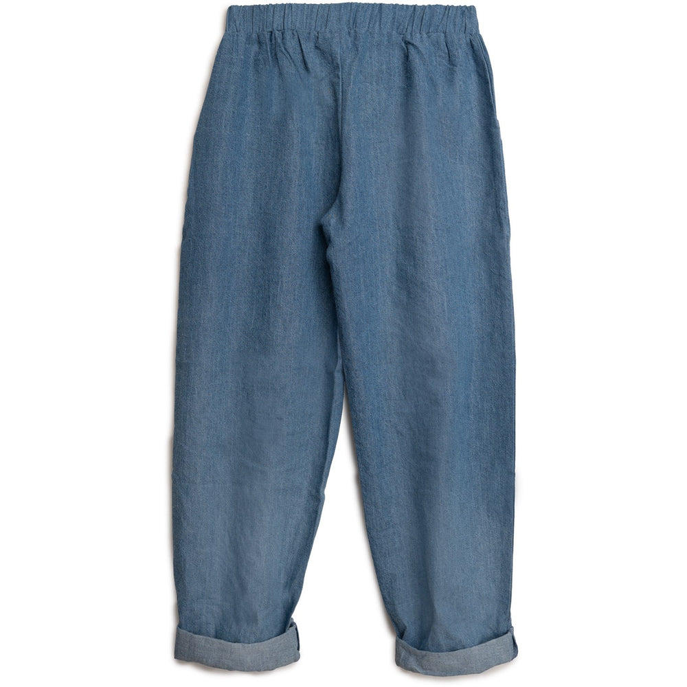 Introducing the Hanevild Denim Pants, a staple in any young wardrobe, designed for both comfort and style. These jeans feature a soft 100% cotton fabric that guarantees breathability and ease, making them perfect for children's active playtime. The loose-fit design along with a straight leg offers a relaxed look while ensuring freedom of movement. Available in a timeless denim style, these trousers are versatile for any occasion, enhanced by their complementary side pockets and an adjustable elastic waistband for a snug, customizable fit. Care is straightforward: simply machine wash at 30°C and lay flat to dry to maintain their quality and feel. Ideal for creating a coordinated look with the matching Hanevild denim shirt, these pants provide both functionality and fashion.