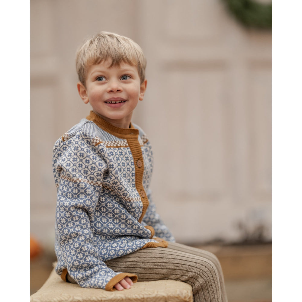 Discover the charm of the Hanevild Moonlight Blue Alex Cardigan, expertly crafted from 100% high-quality organic cotton. This splendid knit cardigan showcases a delightful pattern, blending both style and comfort seamlessly. Available in a serene moonlight blue, this piece is as easy to care for as it is to wear, simply machine washable at 30 degrees and best dried flat. Perfect for your little one's everyday adventures or special occasions, it promises durability and timeless elegance.