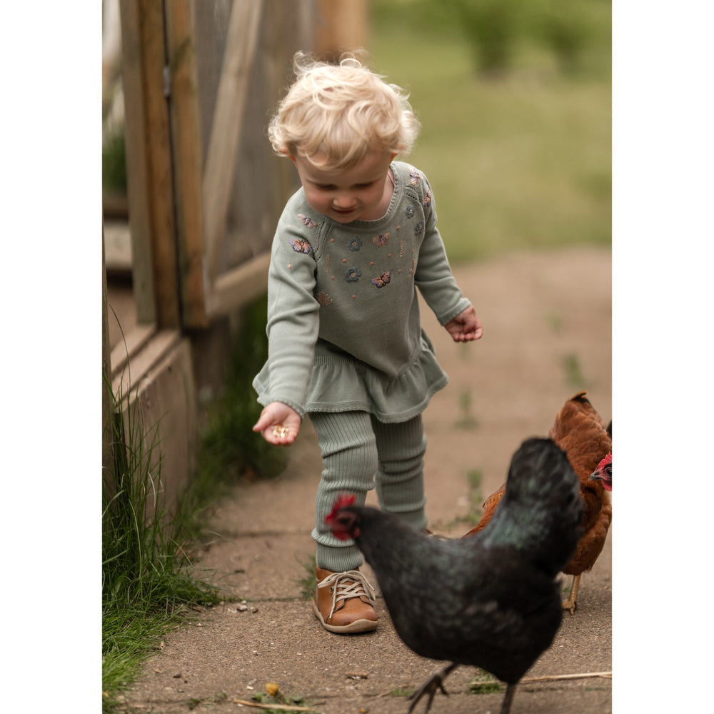 Discover the enchanting Hanevild Sage Sandra Blouse, expertly crafted for children. Made from 100% soft organic cotton, this sage green blouse is as gentle as it is stylish. It features a playful peplum hem, and a unique array of hand-embroidered butterflies, flowers, and leaves across the chest and shoulders in soft pastel hues. The rounded neckline and small back button closure ensure effortless dressing. Ideal for daily wear, this blouse combines comfort with delightful design details. Care is straightforward: machine washable at 30°C and laid flat to dry to maintain its charm. Materials: 100% organic cotton