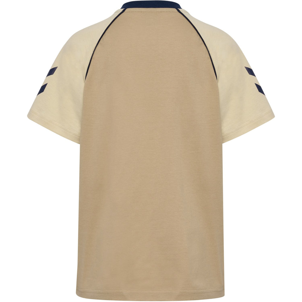 This hmlROLF T-SHIRT S/S is perfect for play and adventure! Made from soft, knitted jersey fabric, this T-shirt is not only comfortable but also super cool with a large Hummel print on the front. The classic Hummel logo adorns the chest, while the iconic chevrons on the sleeves add a sporty touch. The decorative edges complete the look, and with OEKO-TEX® certification, you are ensured that it is free of harmful substances. A sure winner in any children's wardrobe!