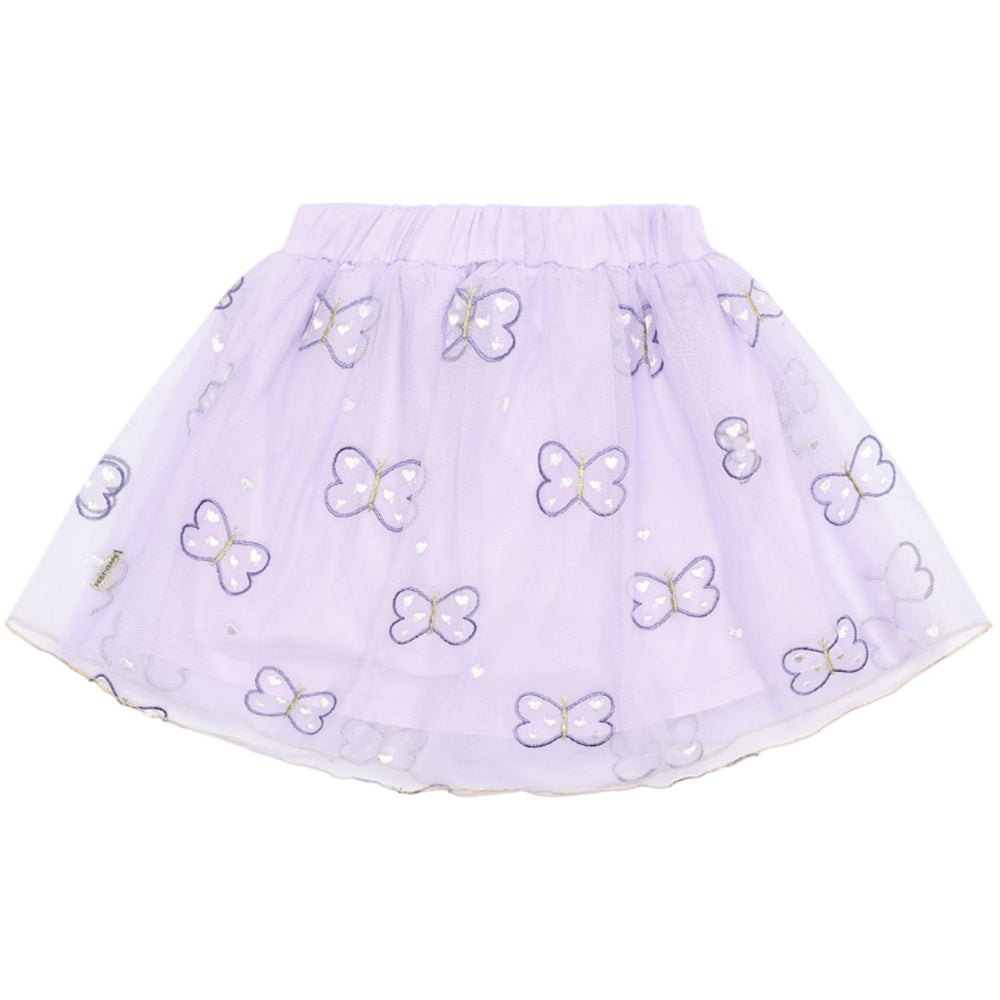Dress your little one in the whimsical charm of the Hust & Claire Lavender Ninna Skirt, a delightful choice for any child's wardrobe. This enchanting tulle skirt is adorned with delicately sewn-on butterflies that add a touch of magic with every twirl. Designed for comfort as much as for style, it features an elastic waist that ensures a snug, adjustable fit for growing kids. The glitter details along the bottom edge give the skirt a sparkling finish, capturing the playful spirit of childhood. Crafted with a soft polyester underskirt, it provides all-day comfort and wearability, making it perfect for everything from a family gathering to a playground adventure. The durable material and easy-care instructions promise hassle-free maintenance and longevity, even through frequent wear. Available in a range of sizes to suit different age groups, the Hust & Claire Lavender Ninna Skirt combines functionality with fun, making it a fabulous addition to any little fashionista's collection.