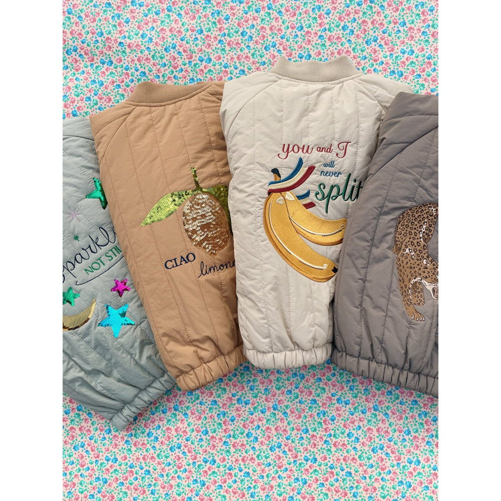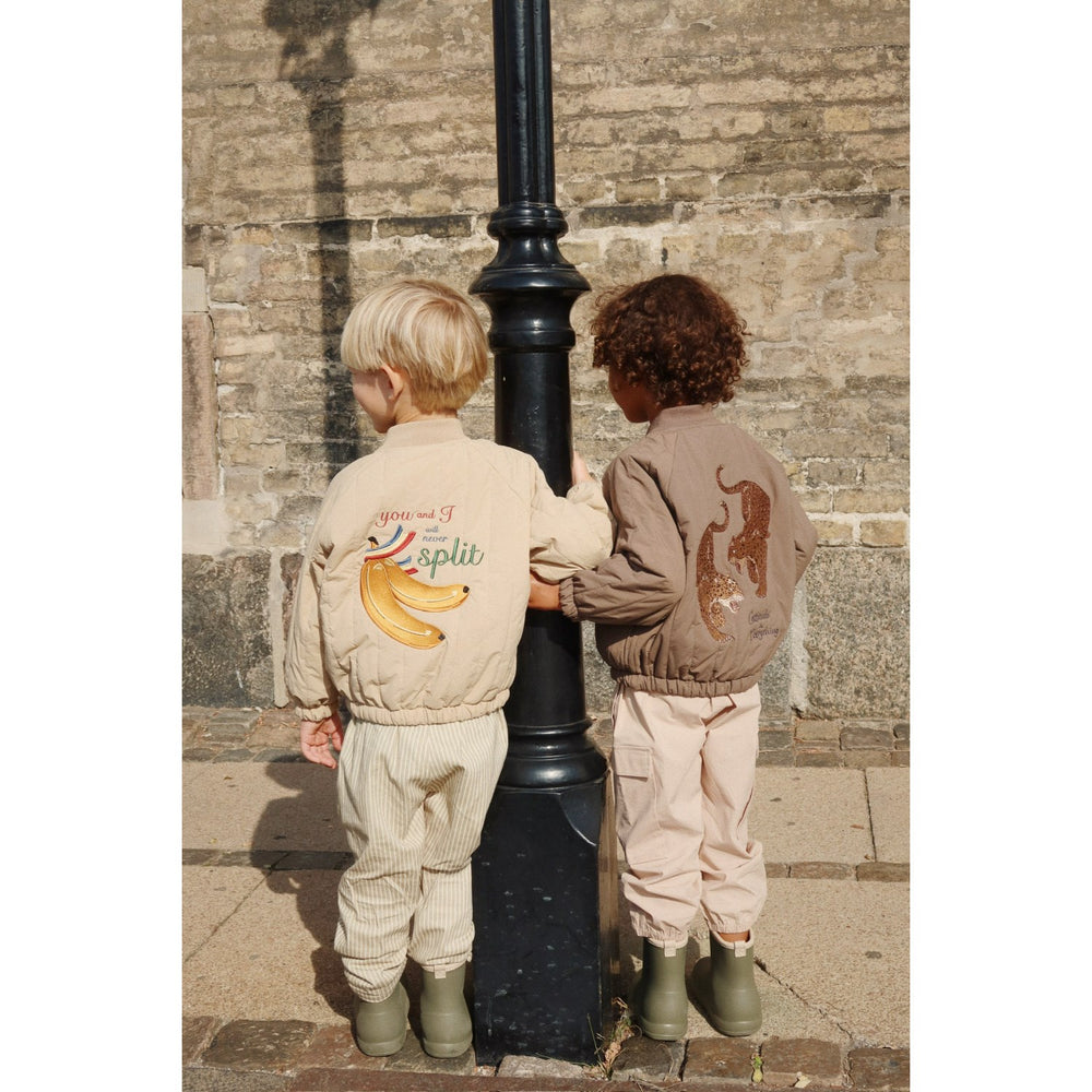 Introducing the Konges Sløjd Travertine Juno Bomber Jacket, a staple in children's fashion that blends timeless style with practicality. Crafted from breathable, fluorine-free impregnated material, this lightweight thermo jacket is designed to keep your little ones warm with its effective polyester padding. The Juno Bomber is both wind-resistant and water-repellent, ensuring comfort and durability in all weather conditions. Its classic design and neutral color make it versatile for any occasion, while maintaining easy care for busy parents. Perfect for lively kids who play without limits.