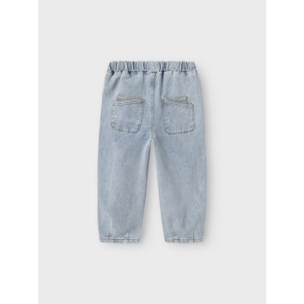 Dress your little one in the stylish Lil'Atelier Medium Blue Denim "Nmmkeifer Loose Dnm Jeans 4019-Kk Lil." Known for its superb comfort and durability, this soft denim fabric is perfect for children's active lifestyles. The jeans feature a contemporary loose fit with an adjustable and elasticated waist to grow with your child. Complete with front and back pockets, detailed stitching, and subtle abrasions for a trendy yet timeless look, these jeans are ideal for both casual outings and dressed-up occasions. Easy to care for, they promise ongoing elegance and ease of wear season after season.