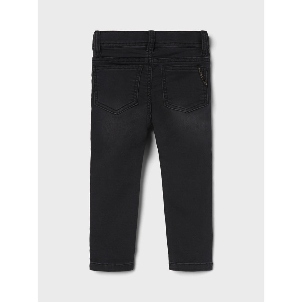 Delight your little one with the Name It Black Denim Nmmtheo Dnmthayer 2689Swe Key Pant Noos, designed for stylish kids on the go. Crafted from innovative sweat denim, these jeans combine the timeless appeal of indigo denim with the softness of sweatpants, offering both style and comfort. They feature an adjustable waist for growing kids and come equipped with practical press stud fastenings for sizes 80-110, and a hook button and zip for sizes 116-164. Designed with x-slim fit hips and legs, they are perfect for active children. The jeans boast extra durability with heavy abrasions and thoughtful details like rivets and a key hanger for functionality. The x-slim fit ensures a modern silhouette while making it easy for your child to move freely and confidently. Perfect for everyday adventures and special occasions alike, these jeans offer a blend of fashion and practicality that kids and parents will love.