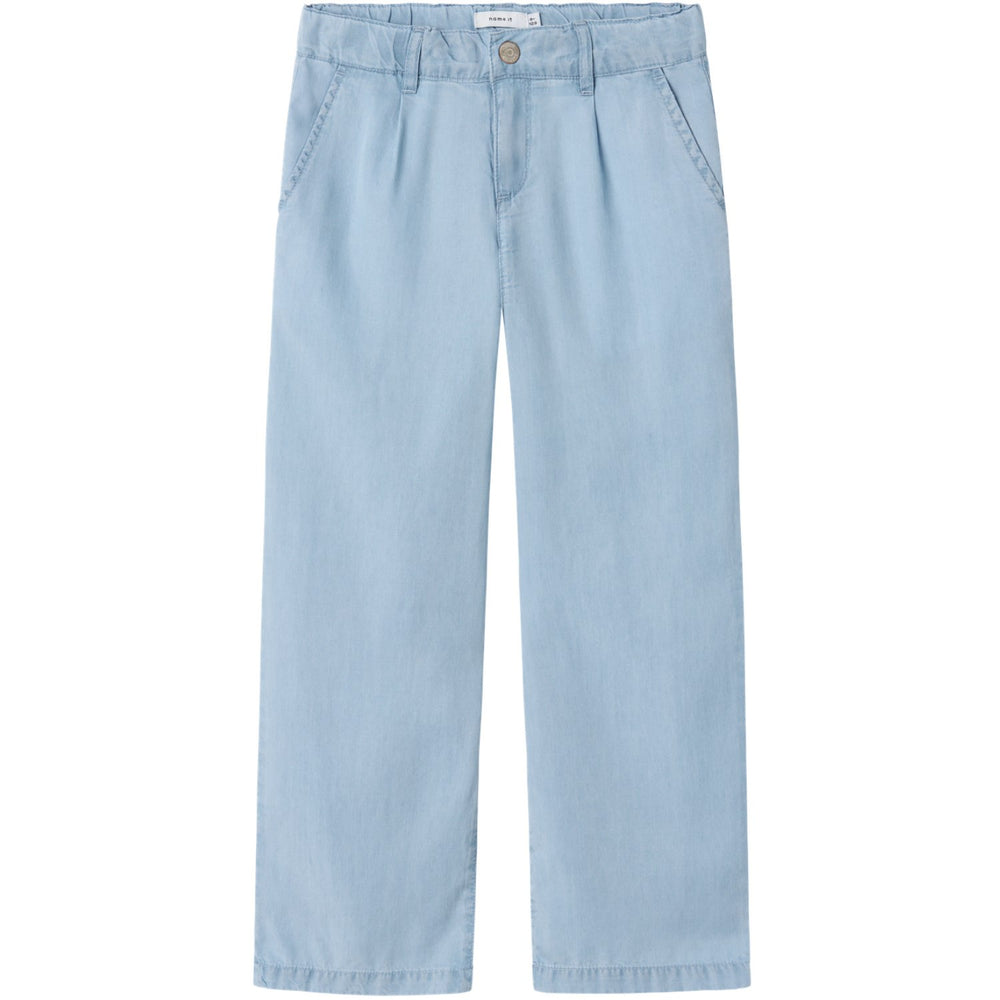 Introduce your child to the world of trendy and timeless fashion with our Name It Light Blue Denim Rose Wide Jeans. Crafted from durable woven denim, these jeans blend quality and comfort, perfect for all occasions and seasons. The light blue hue is complemented by subtle abrasions and pleated details, giving each pair a unique look. Featuring a regular fit at the hip and a stylish wide-leg design, they are equipped with a convenient hook button and zip fly fastening, alongside handy front pockets. Not just stylish, these jeans prioritize comfort and easy care, ensuring they are a practical addition to any child's wardrobe. Ideal for both everyday wear and special occasions, they promise to keep your little one looking chic and feeling comfortable all day long.
