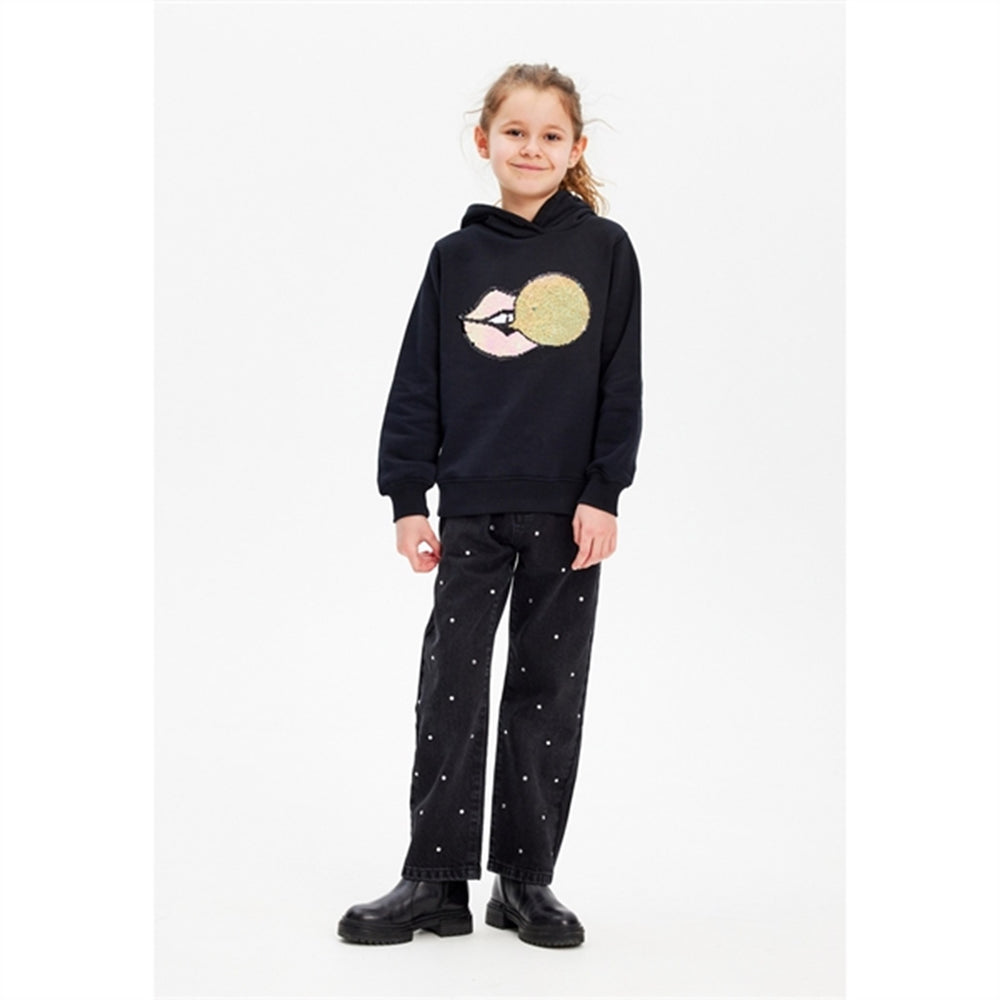 Chic straight-leg black jeans from THE NEW for cool girls. These stylish jeans are decorated with several clear rhinestones to create a sparkling and enchanting piece for your girl's wardrobe. Made from high quality Bomuld denim, these jeans are sturdy and durable, ensuring longevity and comfort. They are great for Christmas, New Years Eve and other celebrations, as a cool and sophisticated alternative to a dress. You can also use them for a more fun and exciting everyday outfit. - Straight-leg jeans with an adjustable elastic inside the waistband, so there is room to grow. - Clear rhinestones glued onto the front of the jeans.- Featuring pockets, belt straps, zip fly, and hook/bar closure hidden under a button. - Denim of 100% Bomuld.- Complete the look by pairing the jeans with THE NEW rhinestone mesh tee for a coordinated and dazzling two-piece outfit.