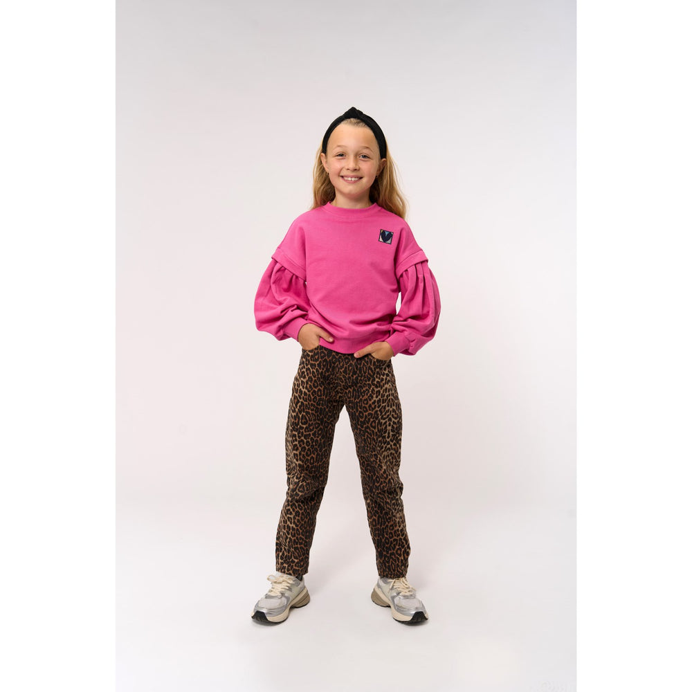 Introducing the New Feather Gray AOP TNPanya Mom Fit Jeans by THE NEW – where style meets comfort! Crafted from soft yet durable denim, these leopard print jeans are a standout with their unique pattern adding a feminine touch. They are designed for ease with front and back pockets, a secure zipper and button closure, and convenient belt loops. Perfect for day-to-day versatility or dressing up for events, their mom fit ensures a comfortable wear all day long. Embrace hassle-free maintenance, thanks to their easy-care fabric. Ideal for adding a hint of flair to your child's wardrobe!