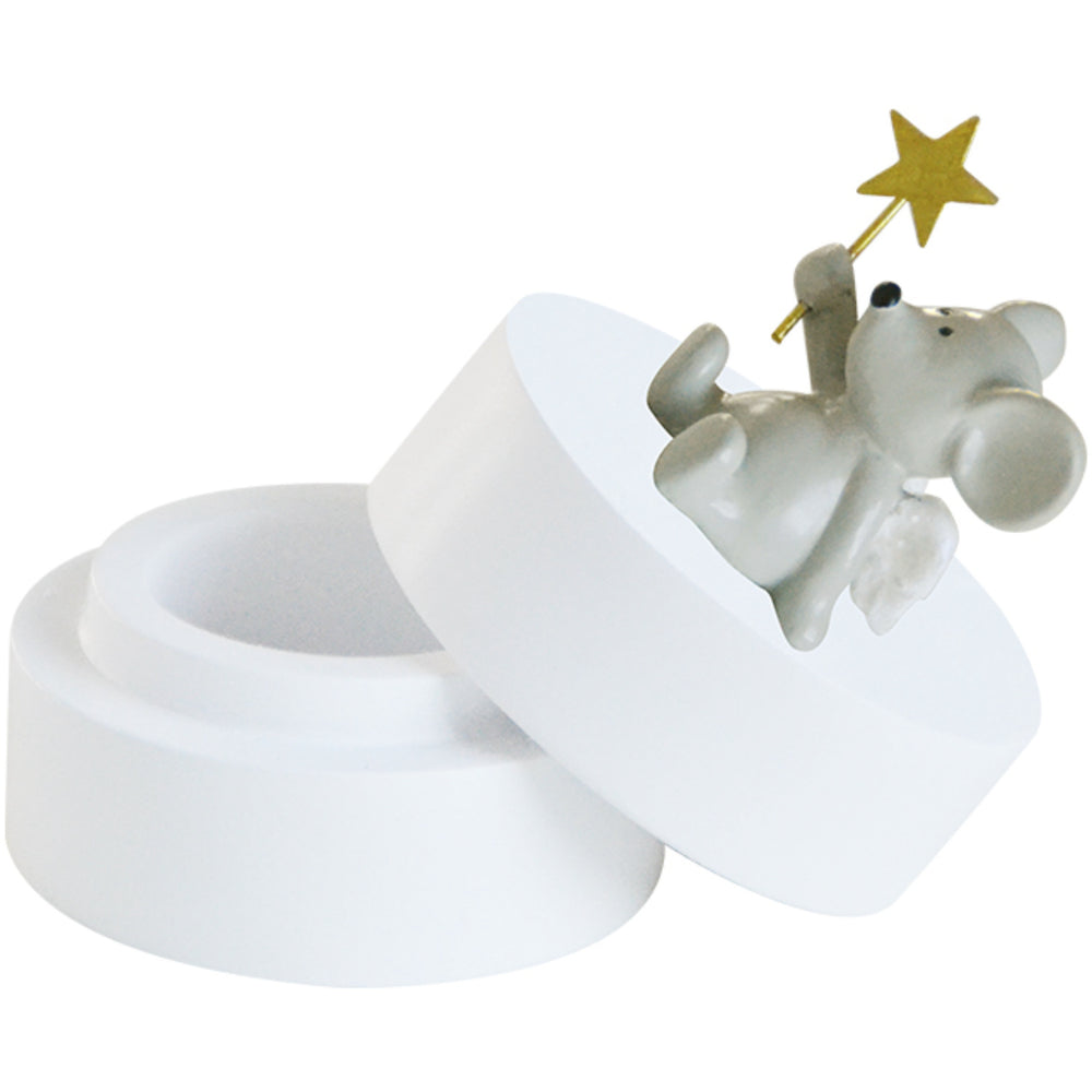 Discover the charm and functionality of the Kids by Friis Tooth Fairy Mouse Tooth Box, an enchanting addition to your child's room. This unique tooth box features a removable sheet enhancing its safety and ease of cleaning. Designed with whimsical aesthetics, it not only stores those precious baby teeth but also sparks the imagination. Ideal for fostering organizational habits, this delightful box is as educational as it is decorative, making it a perfect keepsake that combines comfort, functionality, and fun. Materials: Polyresin