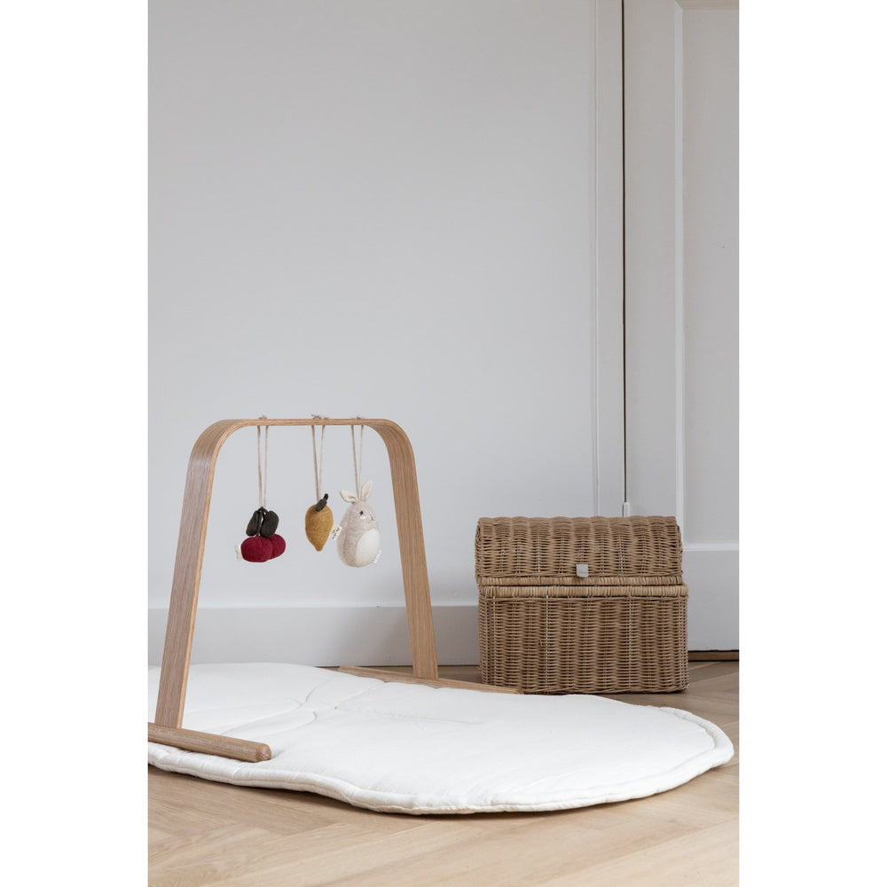 Introducing the KAS Kopenhagen Cream Dragon Fly Oval Playmat, skillfully crafted from organic muslin cotton to ensure a gentle, toxin-free environment for your child. Designed to snugly fit inside our Kai baby cot, this dual-purpose mat not only provides a plush surface for floor-based play but transforms into a cozy top mattress. Its lightweight and oval shape facilitate easy portability and straightforward maintenance, making it an ideal choice for parents seeking both safety and practicality in children's play accessories. Ideal for infants, this playmat promotes a stimulating and comfy setting for your child's early adventures.