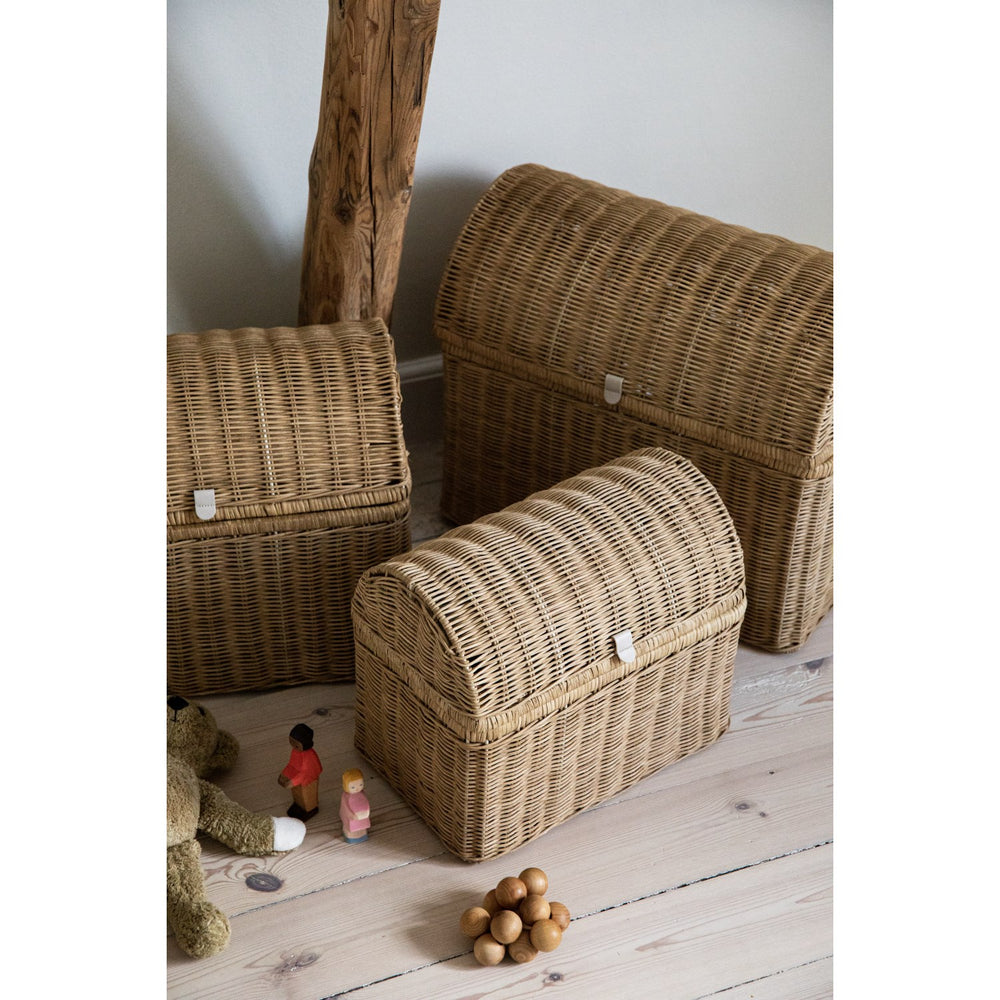 Brighten up your child's space with our handwoven KAS Kopenhagen Dessert Kas Baskets. Available in three sizes, these charming baskets ensure safe and functional storage, neatly tucking away toys and essentials while adding a touch of elegance to any decor. Crafted from natural materials, each piece is unique, offering a gentle variation in color and shape that encourages a stimulating environment. These versatile baskets are not only perfect for organizing but also for instilling a sense of order and beauty in your child's room, making everyday cleaning an enjoyable activity. Materials: Raffia & Leather Handle