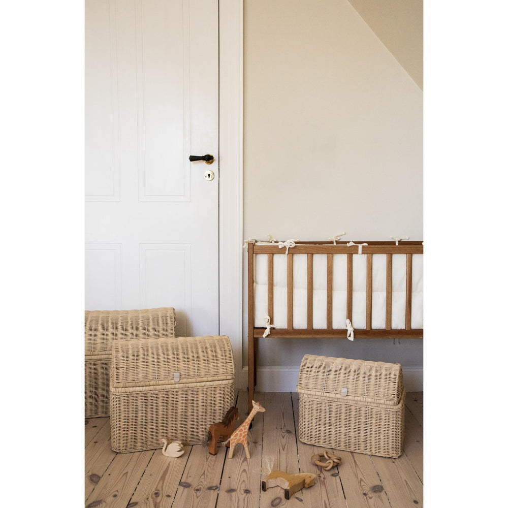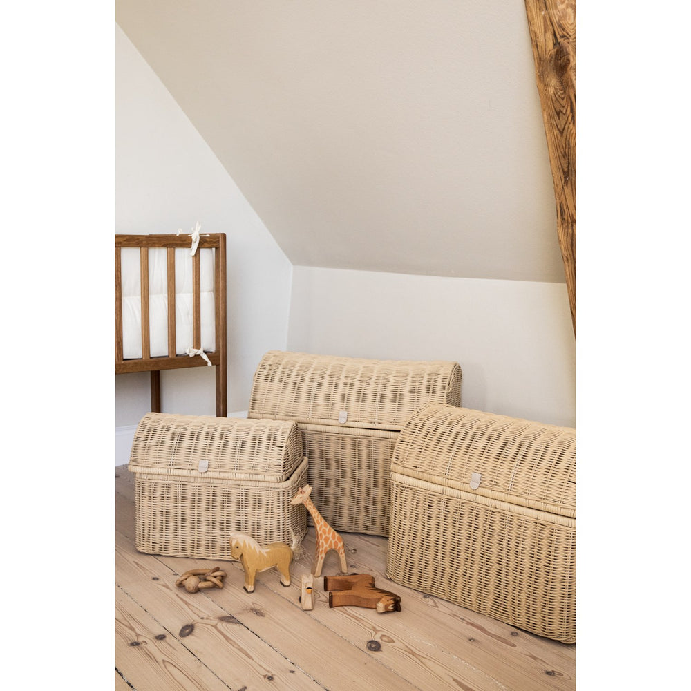 Discover the charm of our handwoven KAS Kopenhagen Sand Kas Baskets, ideal for organizing with elegance in children's rooms and beyond. Crafted from natural materials, each basket offers a unique touch with slight variations in color and shape, enhancing any decor. Available in three sizes, they provide versatile storage solutions and add an aesthetic appeal while maintaining high safety and ergonomic standards. Perfect for stimulating organizational skills in young ones, these baskets ensure a tidy yet stylish space. Materials: Raffia & Leather Handle
