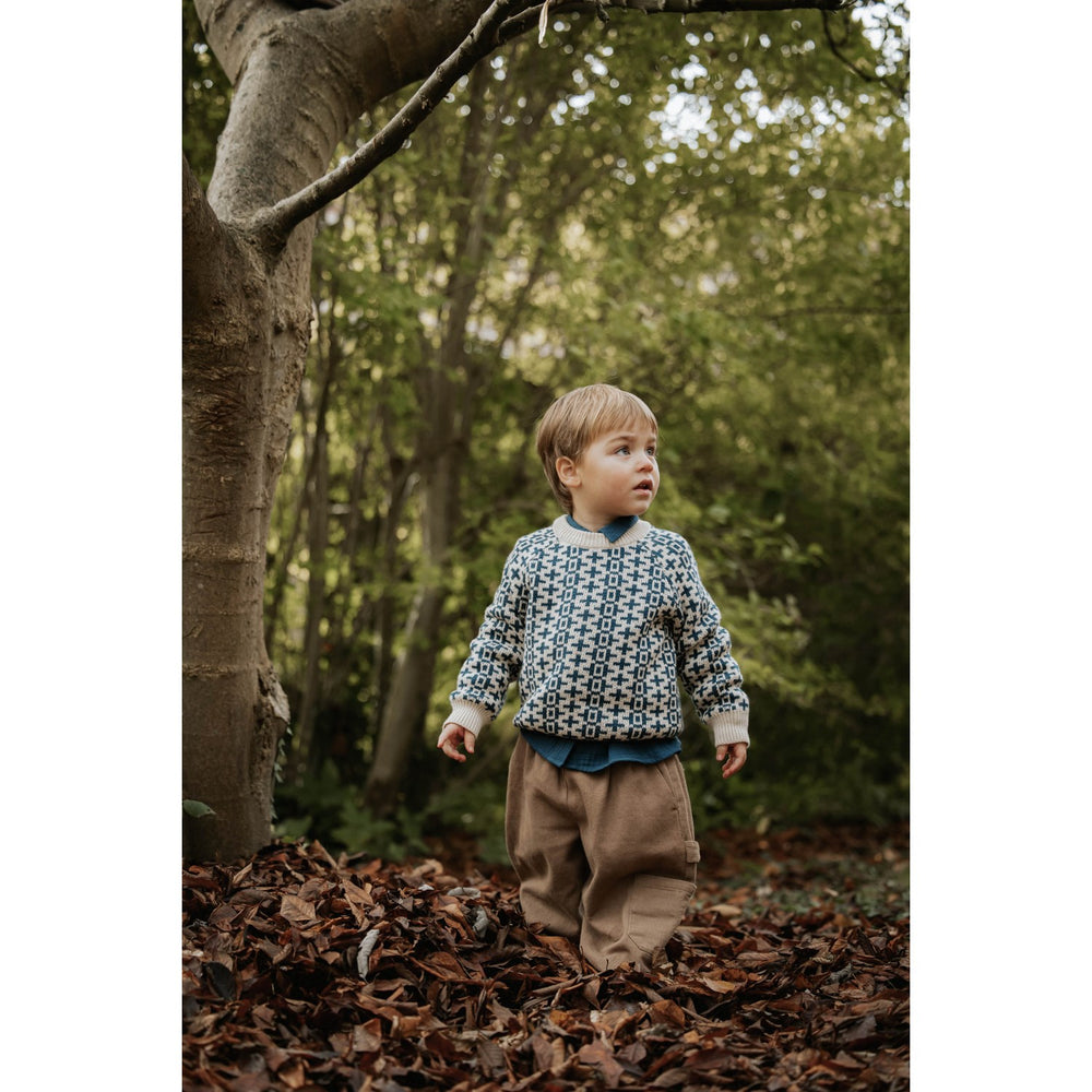 Dress your little one in the timeless elegance of the Fliink Insignia Blue Nova Nordic Pullover. Meticulously crafted from 85% organic cotton and 15% wool, this long-sleeved, knitted sweater features a delightful Nordic pattern. Its round neck and raglan sleeves enhance comfort, while the loose fit and rib knit details promise ease of movement. Available in a soothing blue, this pullover is easy to care for—simply machine wash and lay flat to dry, ensuring durability and continuous comfort. Perfect for cooler weather, it blends classic style with practical warmth.