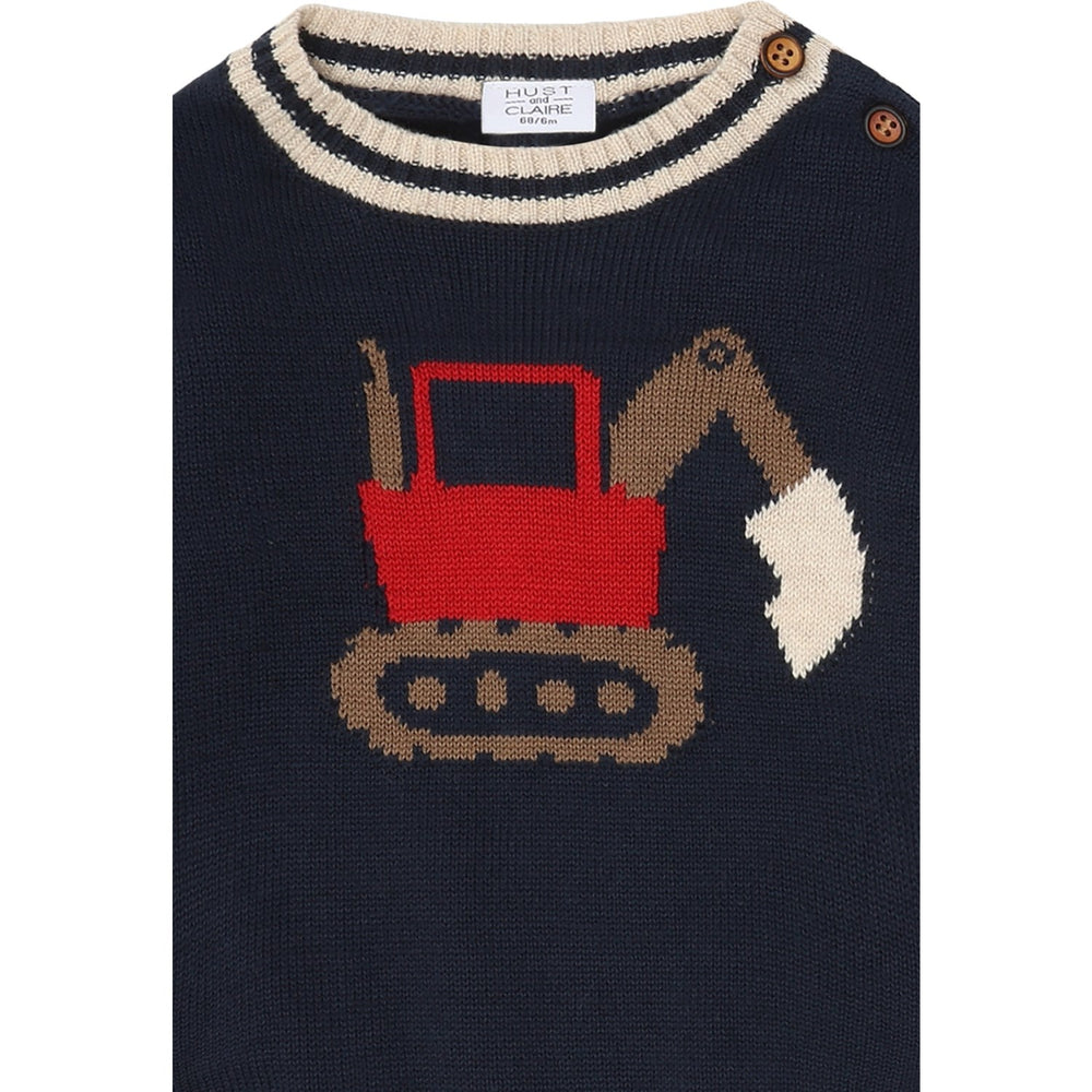 Introduce a touch of elegance to your child's wardrobe with the Hust & Claire More Navy Pilou Knit Backhoe. Crafted from soft knit fabric, this sweater boasts a charming backhoe pattern that captures the playful spirit of childhood. The navy hue, combined with a versatile design, ensures it pairs beautifully with various outfits, while the gentle fit is designed to cater to a child’s need for comfort and freedom of movement. Easy to care for and incredibly durable, this piece from Hust & Claire not only looks delightful but is practical for both daily wear and festive occasions, making it a top choice for parents and kids alike.