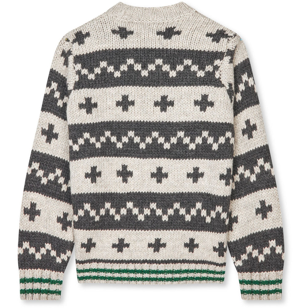 Experience the warmth and style with the Mads Nørgaard Keldino Reykavik Sweater. This charming knit sweater in nature melange and charcoal melan shades is perfect for chilly days. With a soft blend of 75% polyacrylic, 15% wool and 10% baby alpaca wool, it offers both comfort and durability. The ideal companion for your child's winter wardrobe, where functionality meets Scandinavian design.