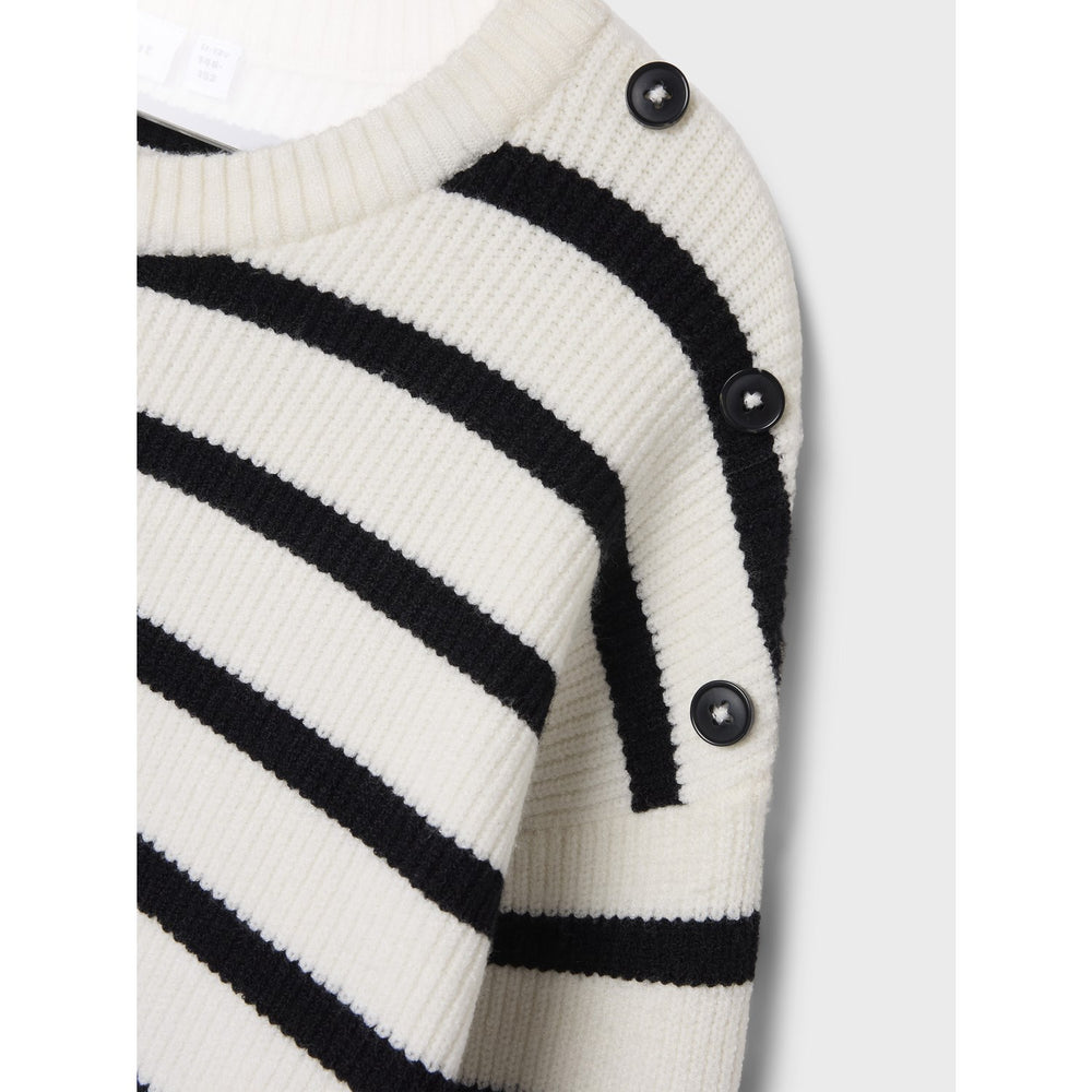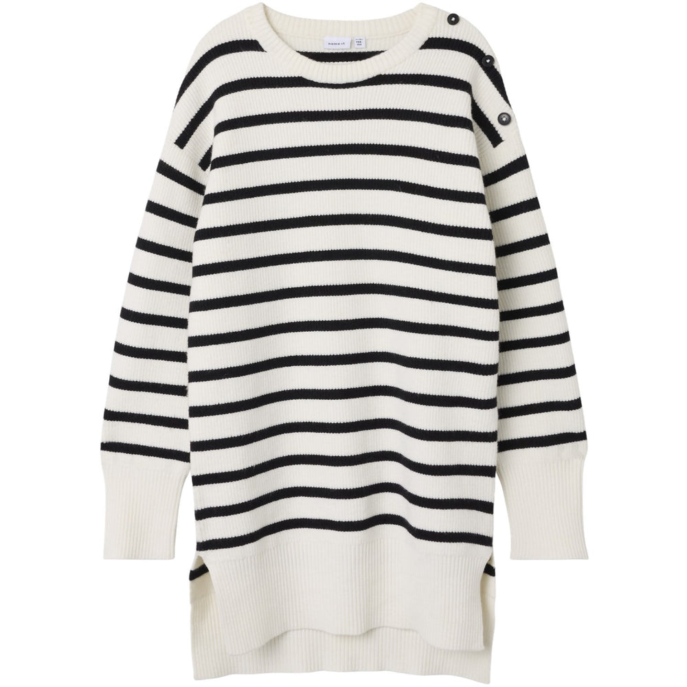 Wrap your little one in the cozy embrace of the Name It Cloud Dancer Ratcha Tunic. Crafted from soft, flat-knit fabric, this knitted pullover promises both timeless style and unparalleled comfort. Featuring a classic round neck and long sleeves with snug ribbed cuffs, it's perfect for play or relaxation. The button details and side slits add a charming touch, while the regular fit ensures easy wearability. Ideal for both chilly evenings and frosty mornings, this tunic will keep your child warm and stylish.