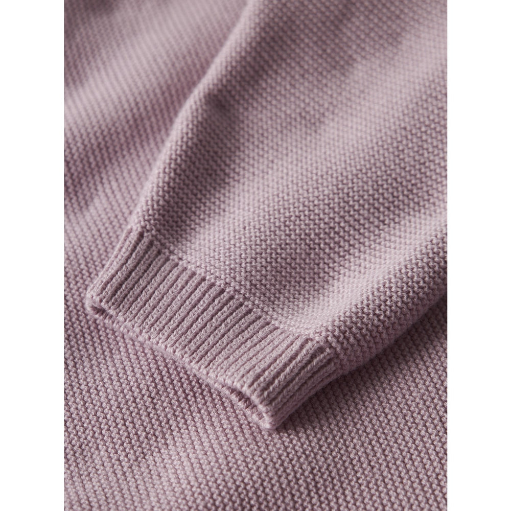 Introducing the Name It Keepsake Lilac Nbfoda Ls Knit Pullover, designed for stylish comfort in your child's everyday wardrobe. Crafted from structured knit with a unique 3D texture, this piece combines a fashionable look with coziness. Featuring long sleeves with ribbed cuffs, a round neck, and charming frill details, it offers a snug regular fit, perfect for active little ones. Its button and loop fastening ensures easy dressing, adding convenience to its myriad of attractions. Note: Keep away from fire. This pullover is more than just clothing; it's a blend of comfort, safety, and trendiness wrapped in one. Closure: Button and Loop Fit: Regular Materials: 100% Cotton - Organic Extra: The main material in this product contains a minimum of 50% organic cotton. Organic cotton is grown without the use of harmful chemicals. Organic cotton farming protects natural resources and biodiversity.