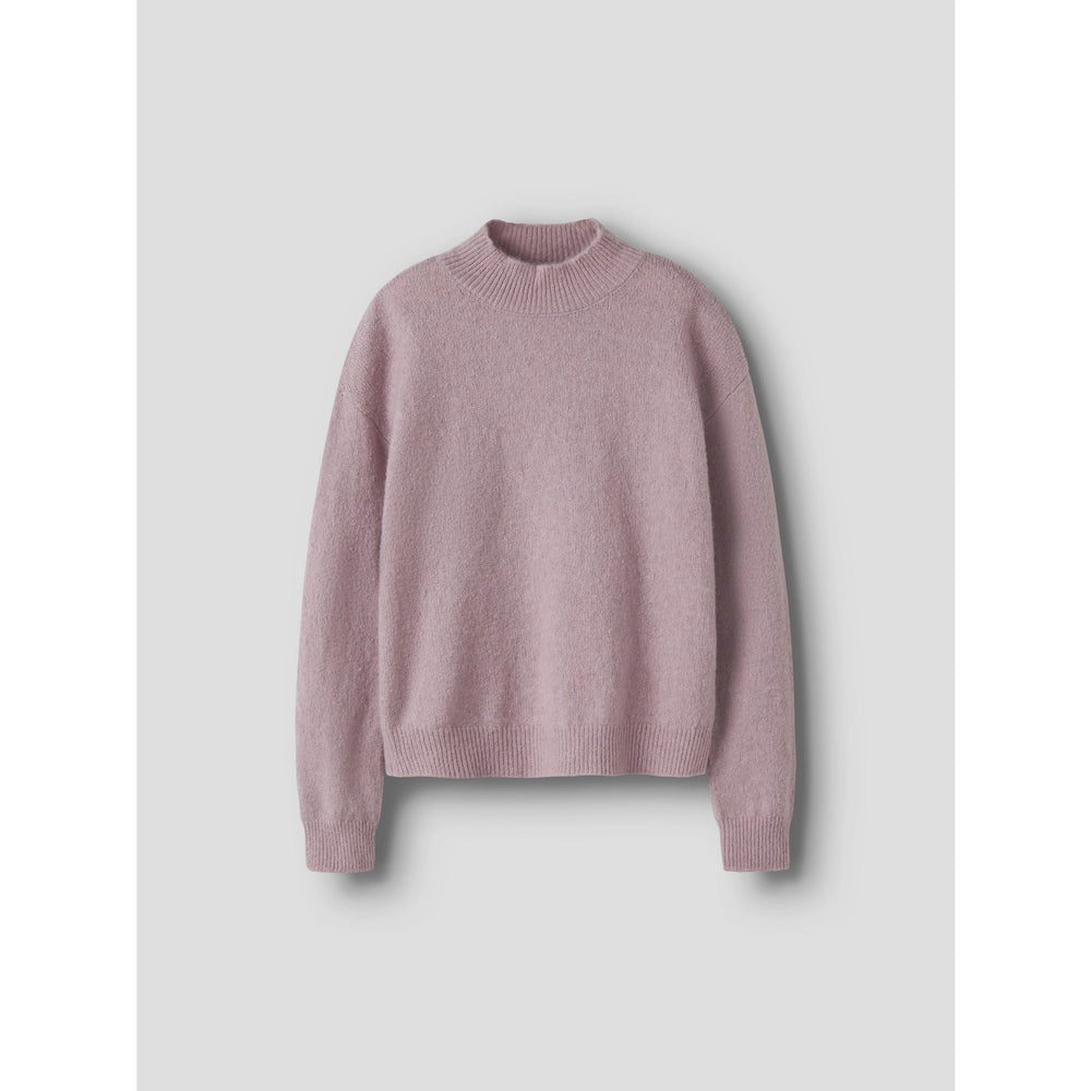 Dress your little one in the cozy embrace of the Name It Keepsake Lilac Nkfvemmie Ls Knit pullover. Perfectly crafted with a hairy knit design, this garment features a fluffy, soft surface ideal for staying warm. The lovely lilac color adds a gentle touch of style, while its round neck and long sleeves with dropped shoulders ensure a comfortable, regular fit. Ribbed cuffs and hem not only enhance durability but also add to its charming aesthetic. A must-have for your child's wardrobe this season!