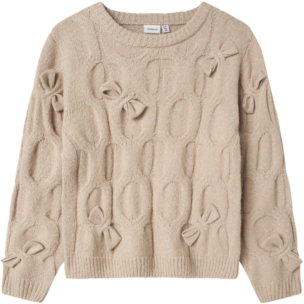 Discover the charm of our Name It Peyote Nkfolivia Ls Knit pullover, meticulously crafted for your child's everyday wardrobe. This knitted pullover combines a snug regular fit with long sleeves and ribbed cuffs to enhance durability and comfort. Its unique structure knit not only adds a touch of trendiness with a captivating 3D effect but also ensures your child stays cozy throughout the day. Highlighted by a delicate bow detail and a classic round neck, this piece melds style with practicality. Ideal for a range of occasions, it promises to keep your little one both stylish and comfortable.