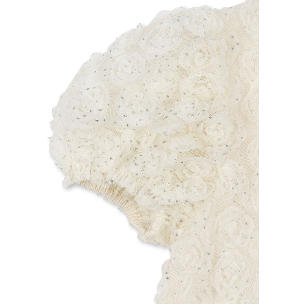 Discover the enchanting charm of the Konges Sløjd Antique White Ally Dress, perfect for your little one's wardrobe. This elegant dress features delightful puff sleeves and multiple tulle layers that create exquisite volume, ideal for any joyful occasion. Its design is beautifully enhanced with sparkly flower appliqués for a touch of glamour. Crafted with a soft cotton lining, it ensures utmost comfort and wearability. Durable and easy to care for, this dress combines style and practicality, making it a cherished outfit for celebrations and everyday elegance alike.