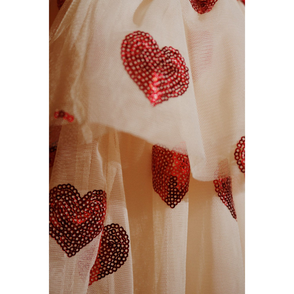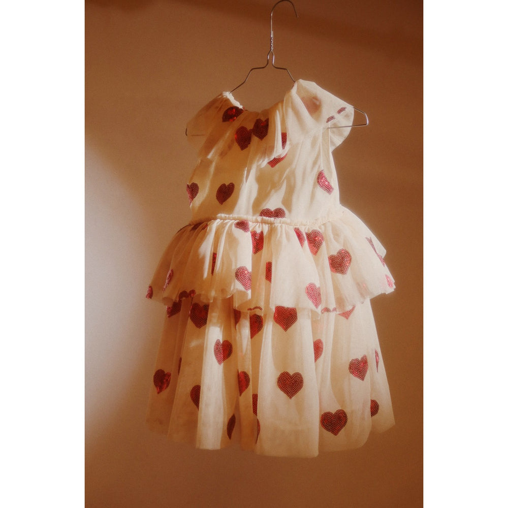 Captivate the charm of Valentine's Day with the Konges Sløjd Buttercream Yvonne Fairy Dress. Exquisitely designed for the festive occasion, this dress features a plush tulle skirt and delicate short sleeves, perfect for twirling. The soft cotton lining ensures it’s as comfortable as it is enchanting. Crafted in lovely buttercream hues and adorned with subtle yet splendid patterns, this dress ensures a perfect fit for your little fairy. Easy to care for and durable, it promises to be a delightful addition to their wardrobe. Ideal for special celebrations or enchanting everyday wear, this dress brings both style and joy to any occasion.