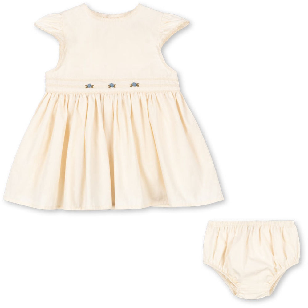 Introducing the adorable Konges Sløjd Eggnog Celebration Aaliyah Baby Set, the ultimate in sustainable and stylish babywear. Crafted from GOTS-certified organic cotton, this charming two-piece features a delightfully airy dress paired with comfy shorts, designed with ease of movement and gentle softness in mind. Its pleasant eggnog hue complemented by subtle designs makes it an enchanting choice for any special occasion. This set is not only easy on your baby's skin but also on the environment, ensuring durability and easy care for lasting beauty. Ideal for celebrating milestones or creating memorable photo ops, this babywear combines practical comfort with whimsical elegance.