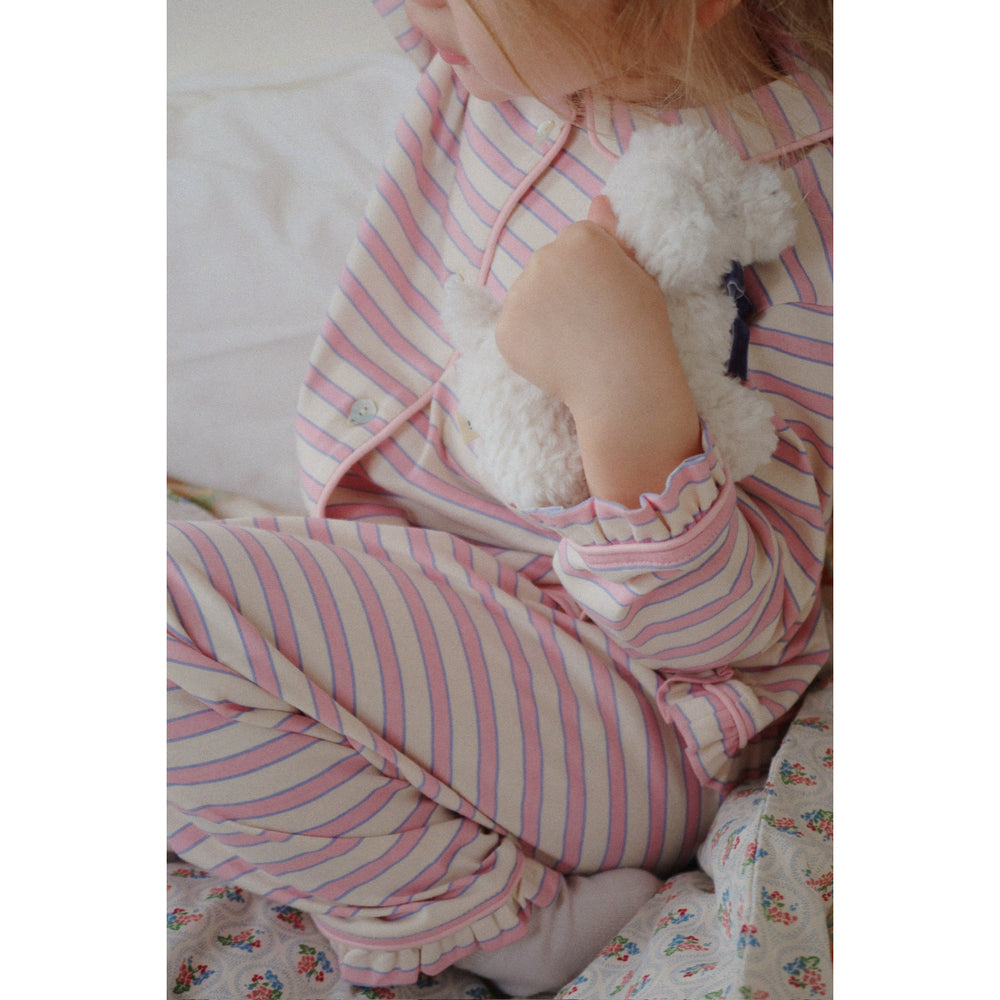 Introduce your little one to the comfy charm of Konges Sløjd Lolly Stripe Pio Frill Set, ideal for leisurely days indoors. This delightful night set, featuring a classic pajama shirt paired with soft pants adorned with frill detailing, is crafted from 100% organic cotton, ensuring utmost comfort. With its soothing stripe pattern and gentle fabric certified by GOTS (CU1094701), it combines style, sustainability, and easy care for everyday wear. Perfect for all cozy occasions, this set promises both comfort and chicness in children's loungewear. Materials: 100% Organic Cotton Certifications: GOTS ORGANIC