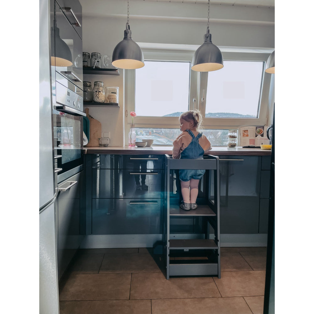 tiSsi® Grey Laquer Felix Learning Tower Solid Beech