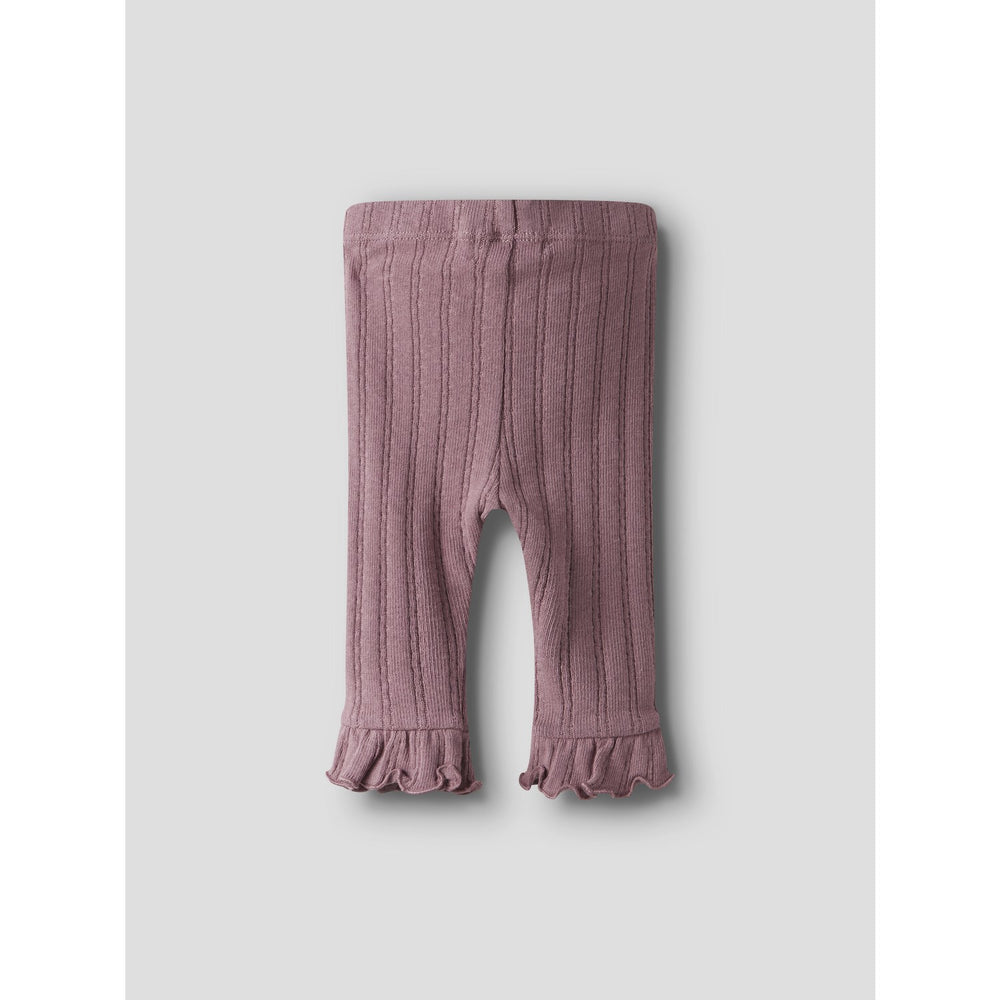 Dress your little one in the Lil'Atelier Nostalgia Rose Nbfrita Sig Slim Leggings for a blend of comfort and style. Crafted from soft, stretchy jersey, these leggings ensure ease of movement and a snug feel. The charming rose color and delicate ruffles enhance their trendy look, while the elastic waist promises a perfect fit. Ideal for both play and relaxation, they are a must-have in your child's wardrobe. Just be sure to keep them away from fire for safety.