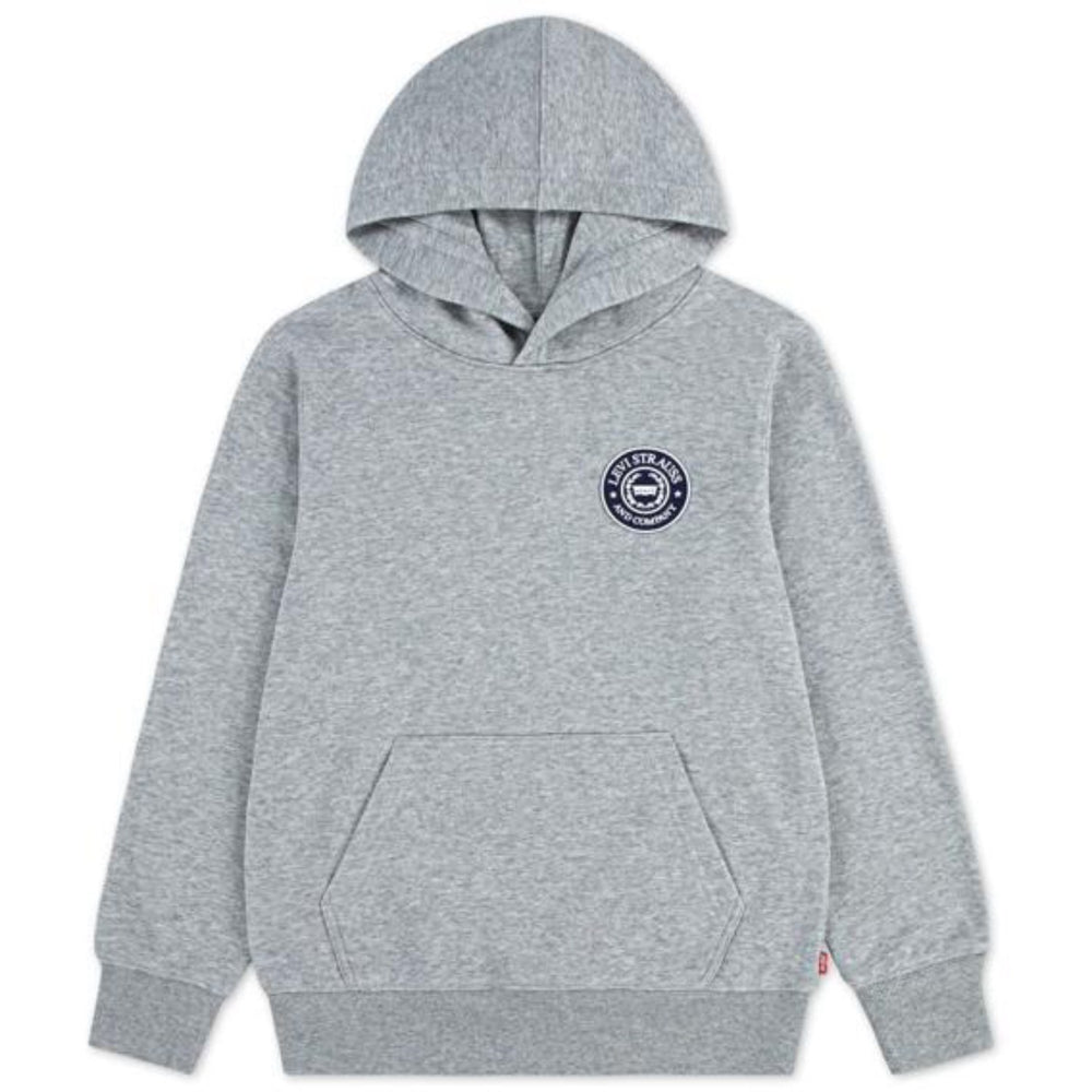 Introducing the cozy Levi's Grey Heather Lvb Modern Crest Hoodie, an ideal blend of style and comfort for children. Crafted from soft, durable materials, this hoodie features a classic grey color with a vibrant crest design. It's designed to offer a relaxed fit, ensuring both comfort and room for movement. Easy to care for, it maintains its charm even after regular washing. Perfect for everyday wear, it combines Levi's trusted quality with kid-friendly fashion.