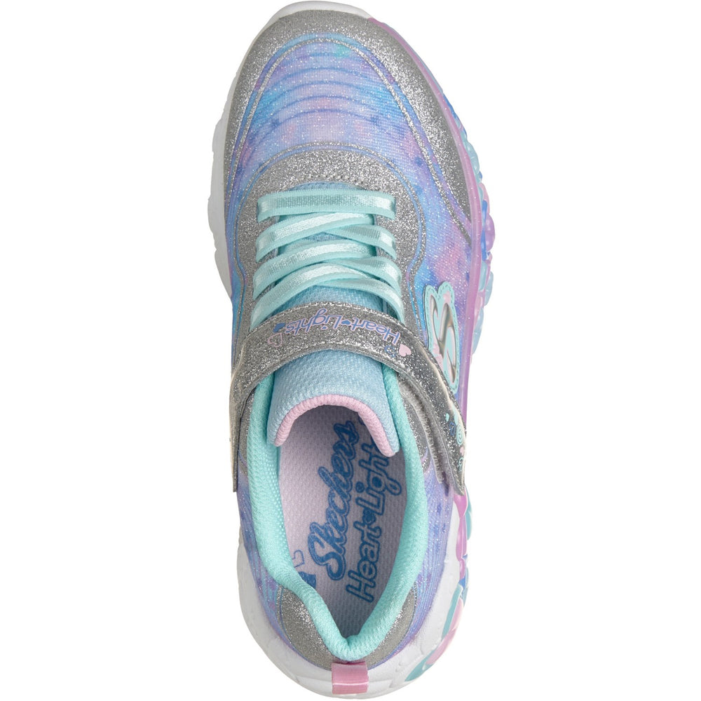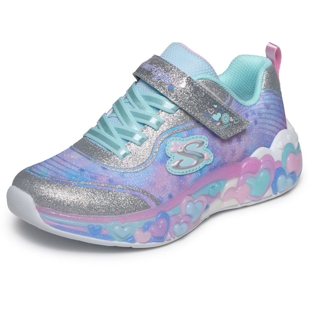 Introduce your little one to the dazzling world of comfort and style with the Skechers Silver S-Lights: Eternal Heart Lights sneakers. Perfect for kids on the move, these sneakers feature a shimmering mesh upper adorned with synthetic mica for a sparkling finish. The slip-on design, combined with elastic laces and Skechers Adaptive Closure, ensures a snug and customizable fit, making them easy to put on and take off. These sneakers stand out with a bright, luminous heart design on the midsole, which not only adds a delightful charm but also features a practical on/off switch for the light function. With a cushioned insole and a flexible outsole that provides excellent grip, these shoes offer ultimate comfort and stability for all-day play. Thanks to the shock-absorbing features and breathable material, your child can enjoy both indoor and outdoor activities with ease. The sporty design and enchanting light-up features make the Skechers Silver S-Lights an irresistible choice for active kids, providing both fun and functionality in every step.