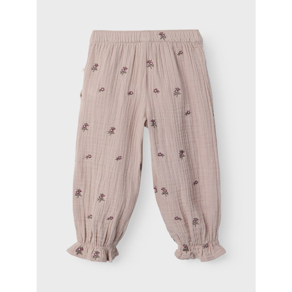 Introducing the Lil'Atelier Shadow Gray Tamina Pants – a perfect blend of comfort and style for your child's wardrobe. Crafted from high-quality woven fabric, these trousers feature a unique criss-cross pattern with a lightly textured surface, ensuring a clean and classic aesthetic. The neutral shadow gray color paired with the intricate embroidery adds a touch of elegance, making it easy to mix and match with any top for a trendy look.