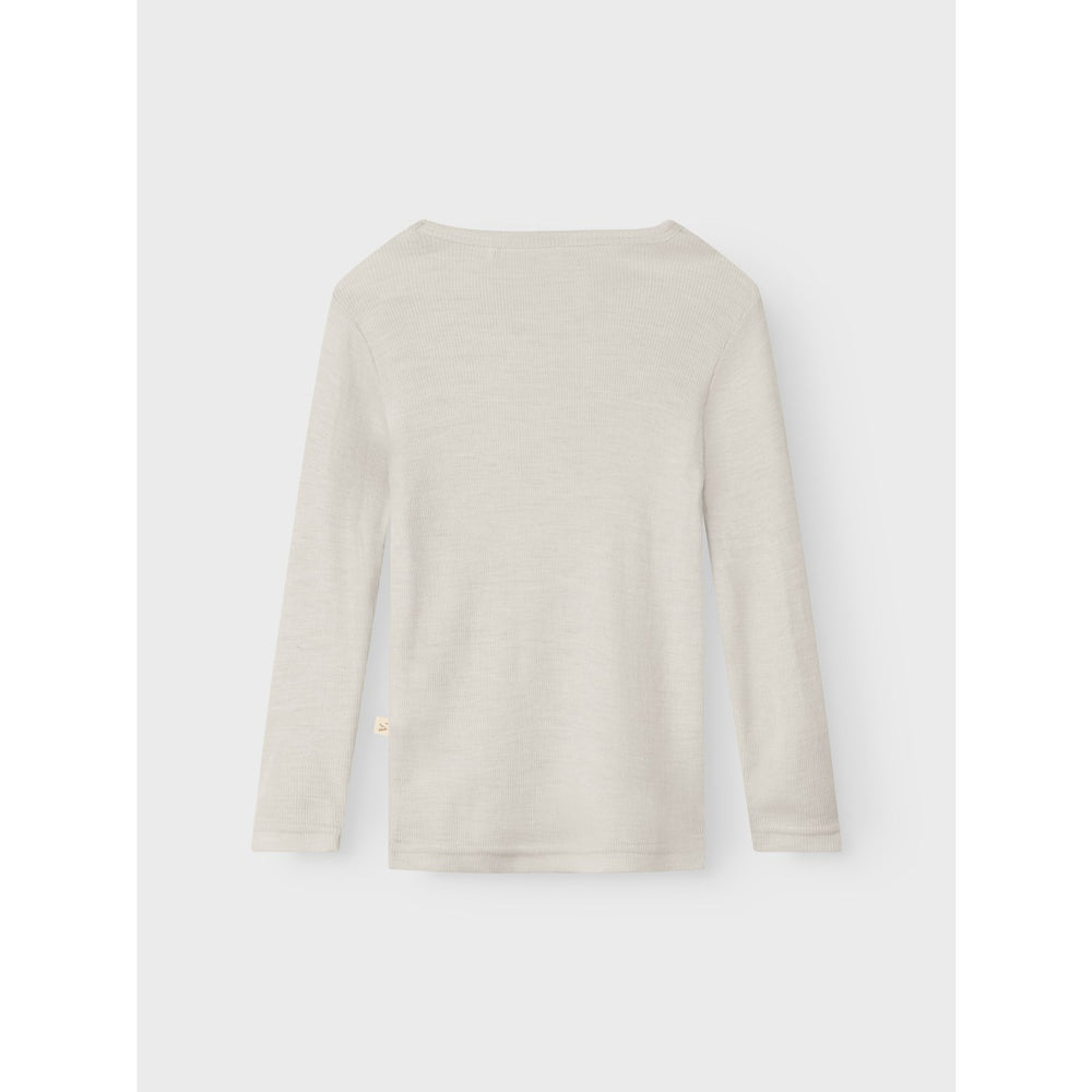 Introduce your little one to the cozy embrace of our Lil'Atelier Turtledove Melange Nmnnalu Rib Wo/Mo Ls Slim Top. Crafted from premium wool, this top boasts exceptional thermal qualities that keep warmth snugly in during the cold and allows the skin to breathe and stay comfortable in warmer weather. Featuring a classic round neck and long sleeves, its slim-fit design highlights a sleek, stylish look perfect for any occasion. The soft, fluffy texture ensures comfort, while the durability of wool ensures it remains a lasting piece in your child's wardrobe. Ideal for active days out or cozy days in, this versatile top provides both function and fashion. Fit: Slim Materials: 60% Wool (Merino Wool), 40% Modal TENCEL™ Washing instructions: Maximum Washing Temperature 30°C - Gentle Process-