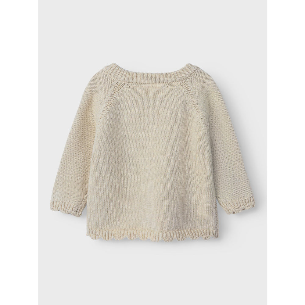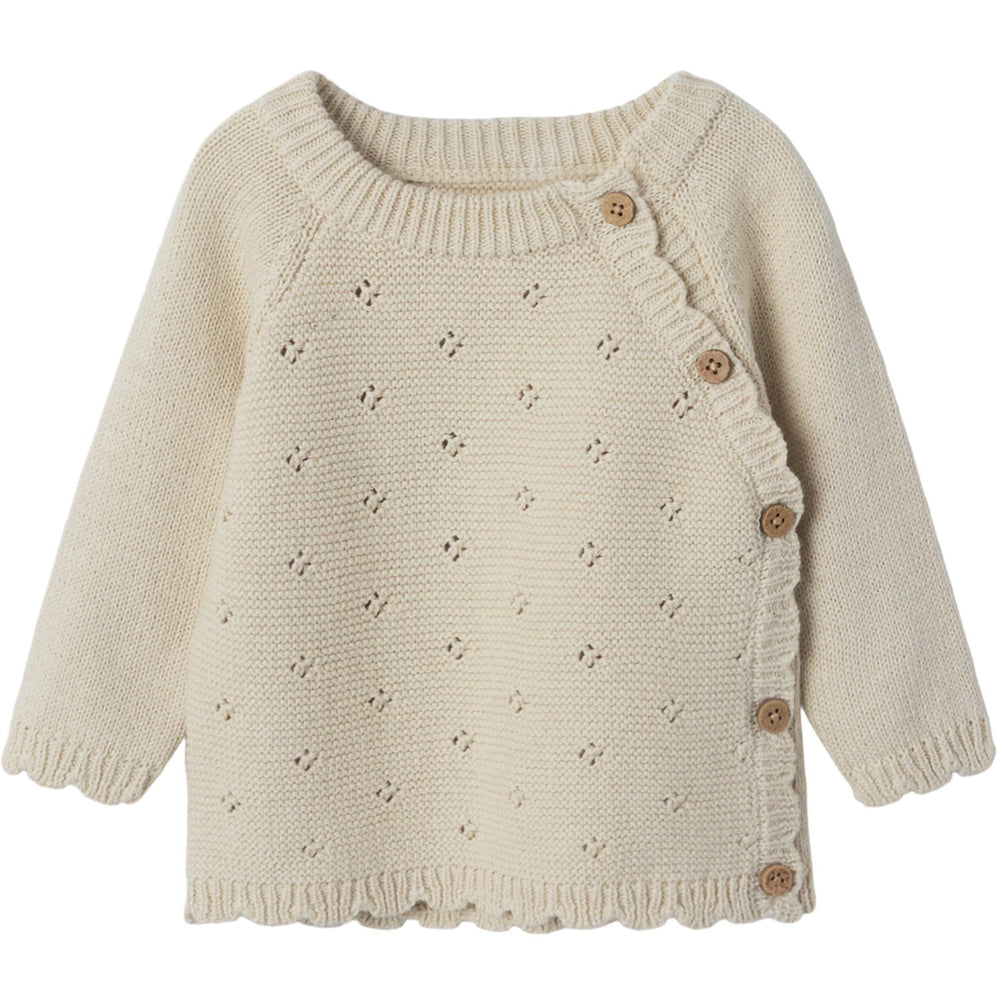 Dress your little one in the Lil'Atelier Turtledove Nbflaguna Ls Wrap Knit Cardigan, expertly crafted for both comfort and style. This charming cardigan features a soft knit texture that ensures your child stays comfortable throughout the day. Designed with a classic round neck and secure button fastening, it boasts long sleeves adorned with delicate scallop details. Available in a regular fit, the piece is easy to care for and maintains its appeal through regular wear. Perfect for layering, this elegant yet functional cardigan adds a trendy touch to any outfit, making it an ideal choice for both everyday wear and special occasions. Plus, its safety feature ensures it stays away from fire, keeping your child safe. Closure: Button fastening Fit: Regular Fit Materials: 80% Cotton - Organic, 20% Cotton - Recycled Extra: The main material in this product contains a minimum of 50% organic cotton. Organic cotton is grown without the use of harmful chemicals. Organic cotton farming protects natural resources and biodiversity