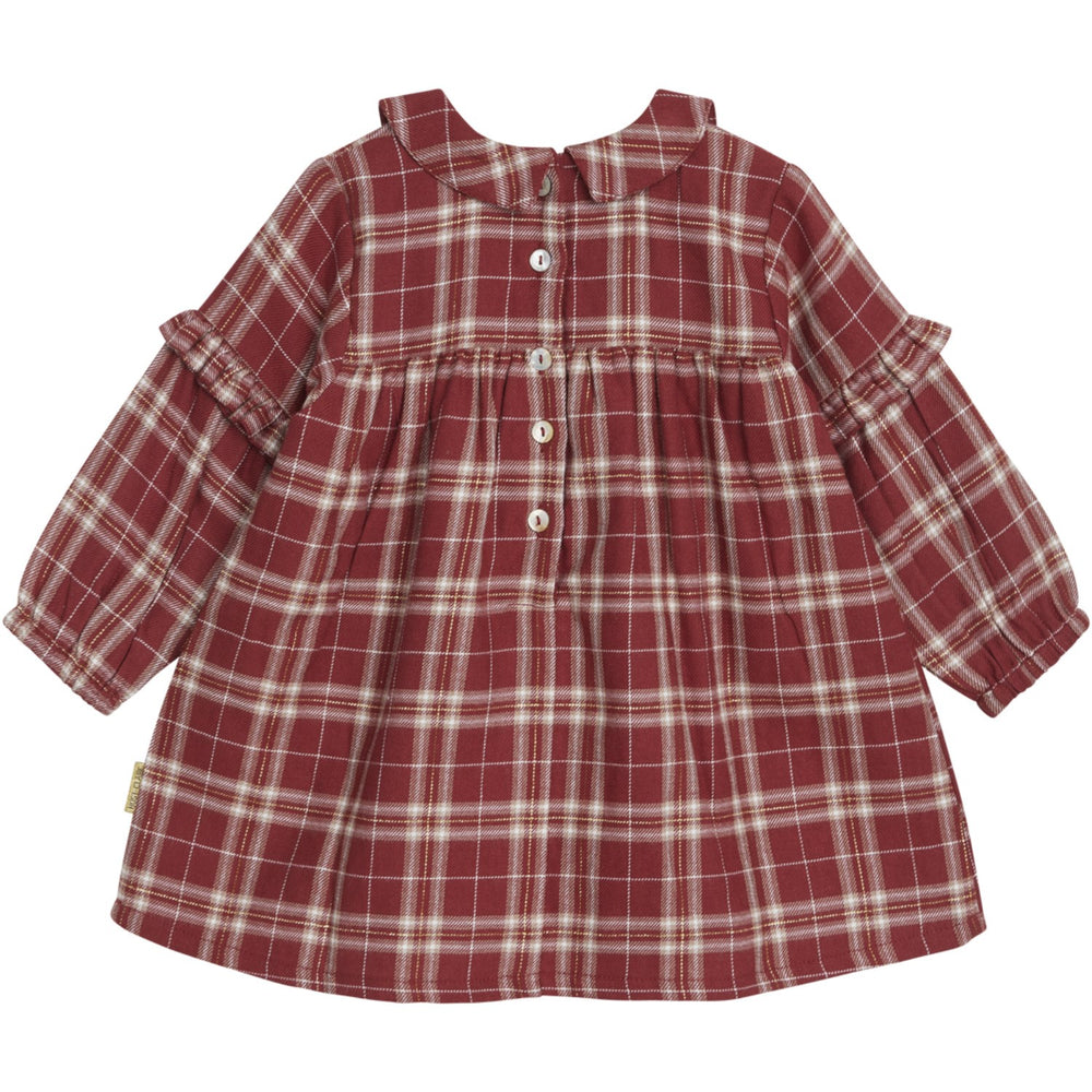 Introduce the charm and style of the Hust & Claire Teaberry Kristel Dress to your little one's wardrobe. Crafted from soft, woven cotton, this long-sleeved dress boasts a delightful checked pattern that exudes a classic appeal. The design features an elegant collar and a cleverly placed seam on the chest that allows for a generous fit, making it perfect for growing children.