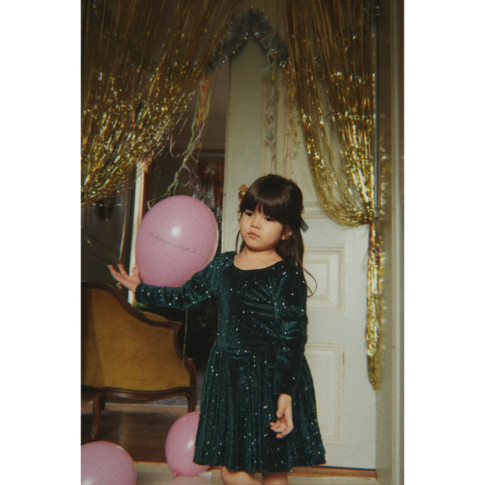 Discover the enchanting charm of the Konges Sløjd Sycamore Viola Dress, perfect for your little one's wardrobe. This soft velvet dress dazzles with its sparkly sequined design, promising a comfortable fit and delightful wear for any occasion. The alluring pattern and the gentle fabric make it ideal for children's delicate skin, while its easy-care instructions ensure longevity and hassle-free maintenance. Ideal for parties or casual chic outings, it encourages style and fun in equal measure. Age: 3Y+ Materials: 95% Polyester 5% Elastane