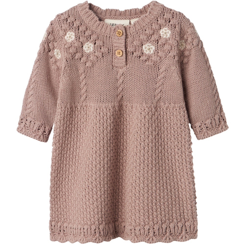 Dress your child in the Lil'Atelier Etherea Brianna Knit Dress for a blend of comfort, style, and safety. This knit dress is crafted with soft material that ensures all-day comfort, featuring a classic round neck and long sleeves perfect for cooler days. The button fastening makes it easy to wear, while the delicate embroidery adds a touch of timeless elegance. Available in a regular fit, this dress is ideal for everyday wear and keeps your little one trendy and comfortable. Be mindful as this garment should be kept away from fire.
