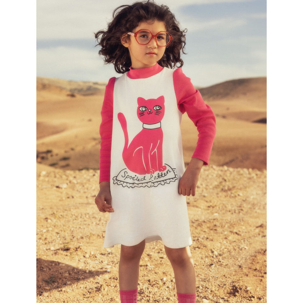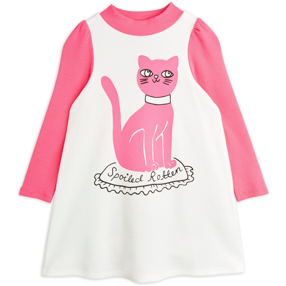 Mini Rodini White Cat Sp Dress - 92-98 is backordered and will ship as soon as it is back in stock.