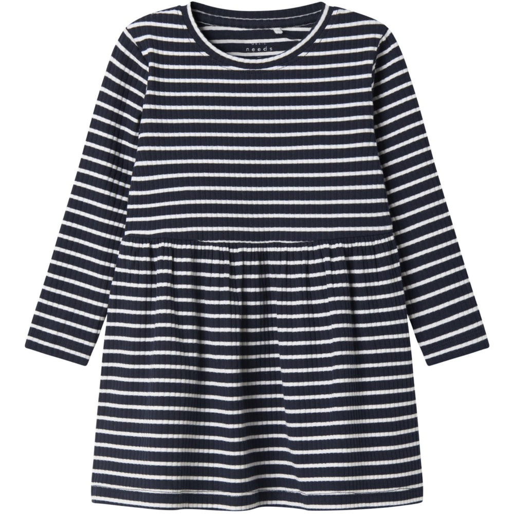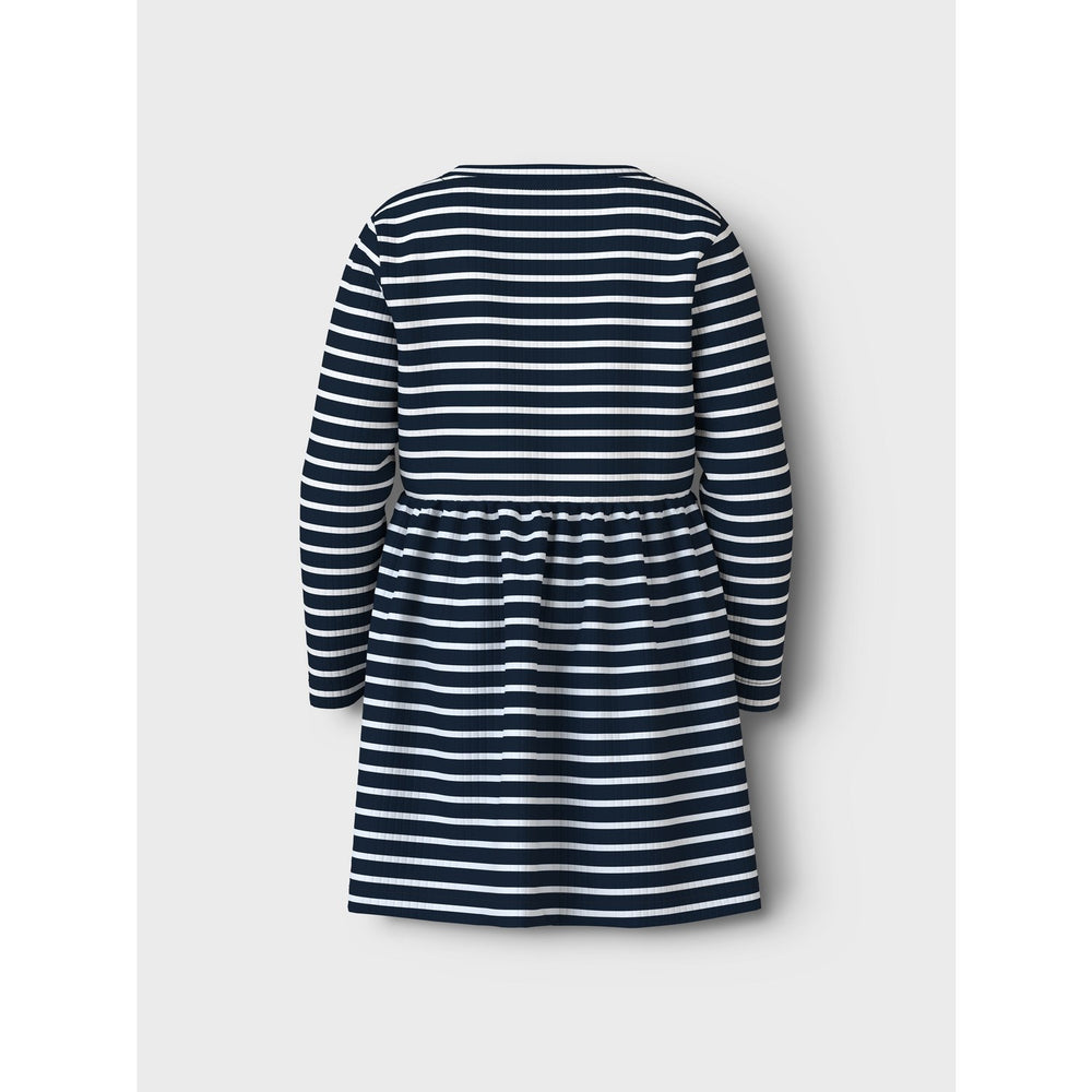 Introducing the charming Name It Bright White Dark Sapphire Vemma Dress, an ideal addition to your little one's closet. Crafted from soft, stretchy jersey, this dress ensures total comfort and freedom of movement, making it perfect for playful days. Featuring a captivating all-over print, long sleeves, and a classic round neck, its regular fit is designed to suit any occasion. This durable and easy-to-care-for dress promises to keep up with your child's adventures while maintaining its appealing look season after season.