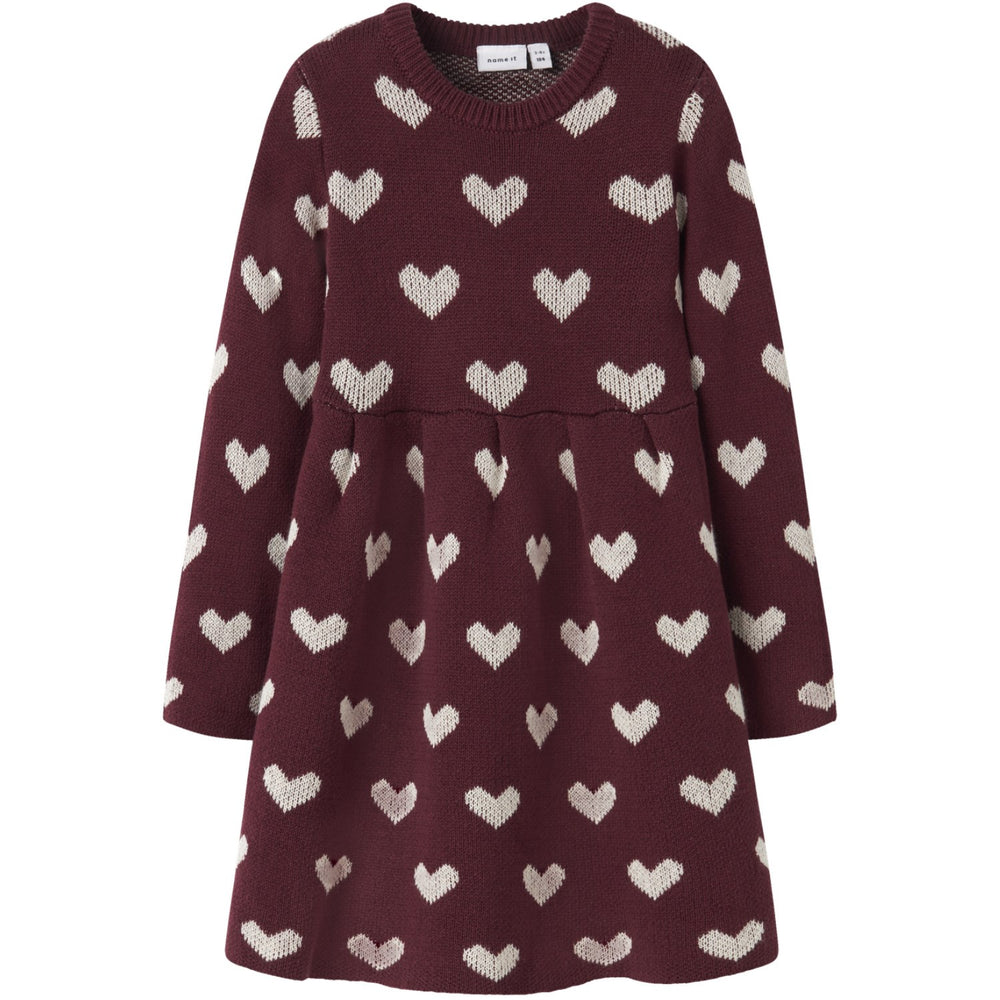 Name It Burgundy Peyote Heart Nmfoana Ls Knit Dress