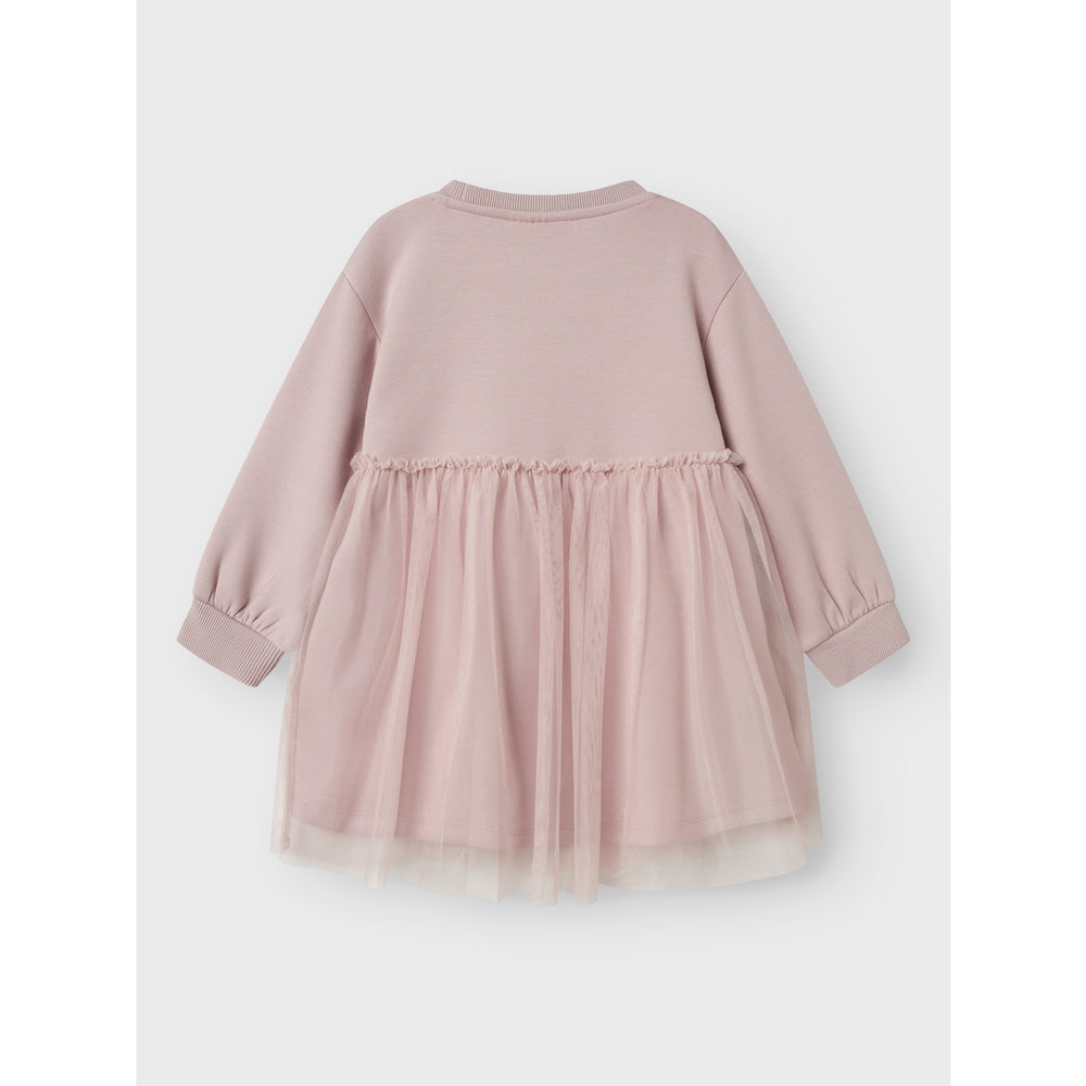 Dress your little one in the charming Name It Burnished Lilac Nmfkersti Sweat Dress! This stylish piece is crafted from unbrushed sweat fabric that promises a smooth outer surface and soft loops inside, ensuring utmost comfort. Featuring a classic round neck, long sleeves with dropped shoulders, and ribbed cuffs, this standard fit dress shines with its unique tulle detail. Perfect for every season and occasion, it's easy to care for and wonderfully functional. Add a splash of whimsy and coziness to your child's daily adventures with this delightful dress! Fit: Standard Materials: 72% Polyester - Recycled, 23% Viscose, 5% Elastane Materials and care: Wash with similar colors Washing instructions: Maximum Washing Temperature 40°C - Gentle Process