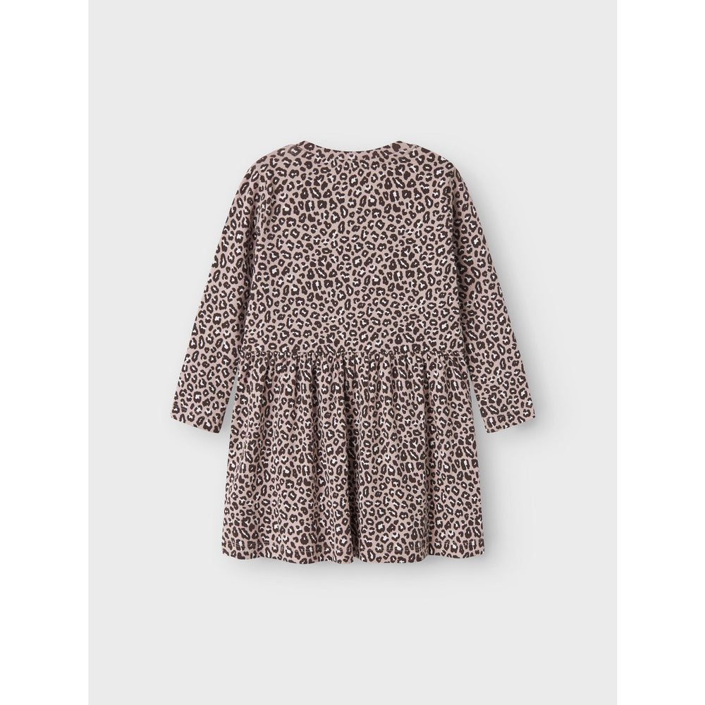 Introducing the Name It Burnished Lilac Nmfleoana Ls Dress, a charming addition to your little one's collection. Crafted from soft, stretchy jersey fabric, this dress ensures comfort and freedom of movement, making it perfect for any activity. It features a stylish slim fit, long sleeves, and a round neck, complemented by a delightful all-over print. Easy to care for, this dress retains its appeal wear after wear. Ideal for any season or occasion, it blends functionality with a splash of fun.