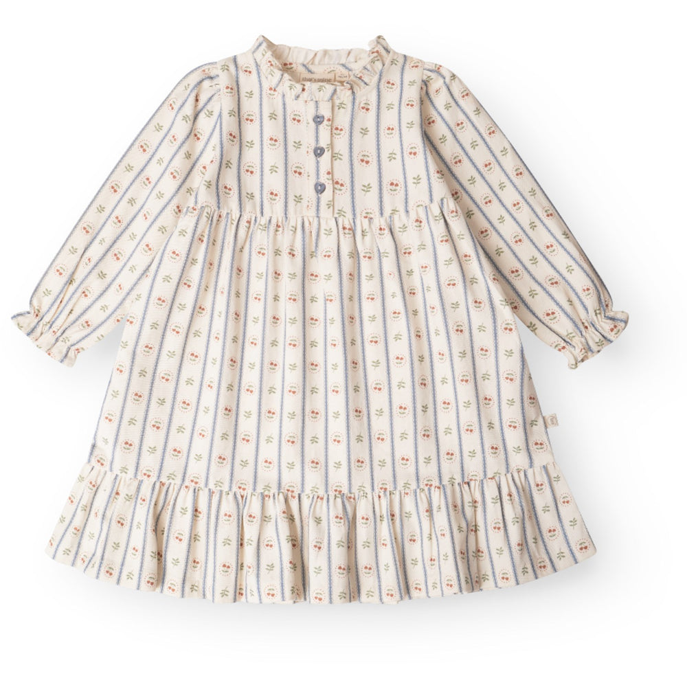 Discover charming comfort in the "That's Mine Love Berry Flicka Dress," designed with a whimsical flounce around the neck and playful wrinkles at the waist. Featuring elastic sleeve hems for a perfect fit, this dress combines style with practicality. The delightful design and berry-inspired color make it an adorable choice for any occasion, while the ease of care ensures it stays fresh and fabulous. Perfect for playdates or special events, it’s a dress that celebrates childhood joy and ease. Materials: 100% Organic cotton Washing instructions: Remember to follow washing and user instructions