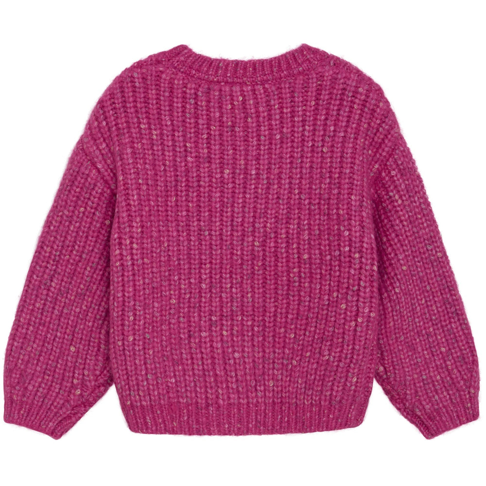 Discover the charming Minymo Fuchsia Fedora Pullover Knit, perfect for adding a touch of sparkle to your child's wardrobe. Crafted from a thick knit fabric, this sweater features a dazzling rustic-style design adorned with sparkles, ensuring style and comfort. Its vibrant fuchsia color and cozy fit make it an ideal choice for cooler days. Easy to care for and durable, it keeps its allure even after many washes, making it a fantastic blend of functionality and fashionable flair. Ideal for pairing with jeans or leggings, it ensures your child stays warm while looking stylish.