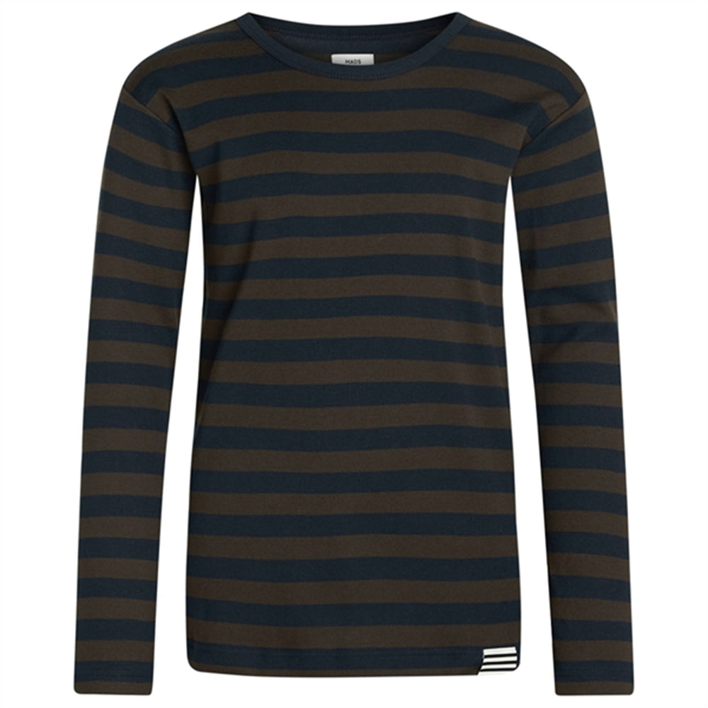 Mads Nørgaard Black Coffee/Sky Captain Midi Rib Tobino Blouse - 10 y is backordered and will ship as soon as it is back in stock.