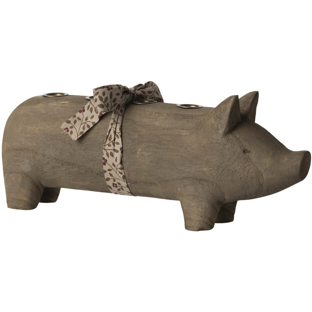 Brighten your holiday season with the charming Maileg Wooden Pig Candle Holder, perfect for creating a cozy Christmas vibe in any room. Its delightful design allows you to mix and match with various colors and sizes, while specifically accommodating candles with a 1.2 cm diameter. Remember, safety first: never leave burning candles unattended. Materials: Wood/Metal Washing instructions: Wipe with a damp cloth.