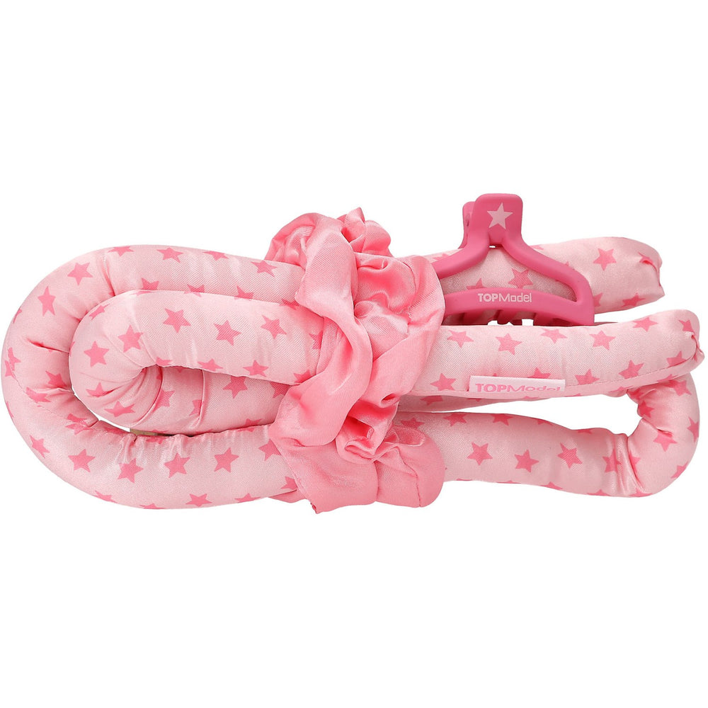 Consists of a large pink papillote with star print, a pink hair clip and two pink scrunchies