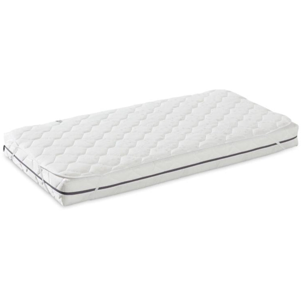 The mattress is crafted with a 3-layer removable cover that is easy to maintain; it is machine washable at 60°C, making it ideal for allergy prevention. The core is composed of polyurethane foam, providing stable yet flexible support to accommodate your child's movements during sleep. Additionally, the buckwheat side is enhanced with tannin, known for its anti-dust mite and bacteriostatic properties, adapting seamlessly to your child's body shape while ensuring continuous airflow.